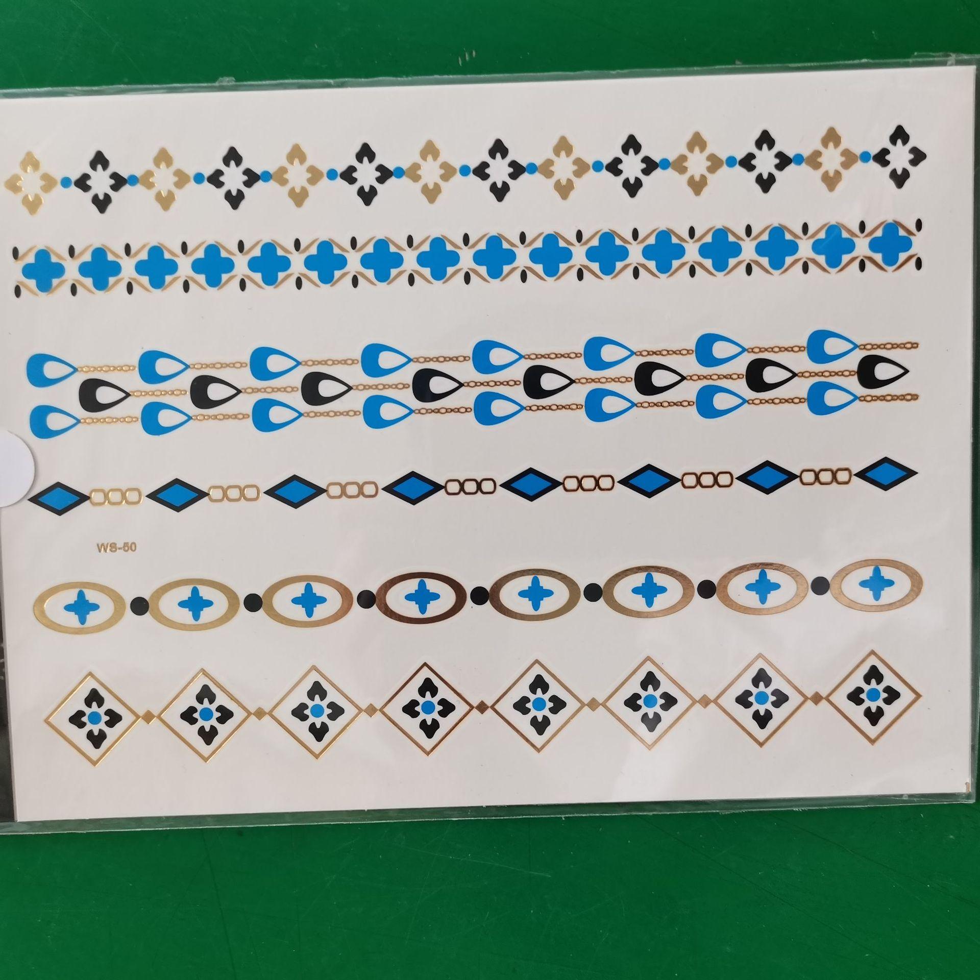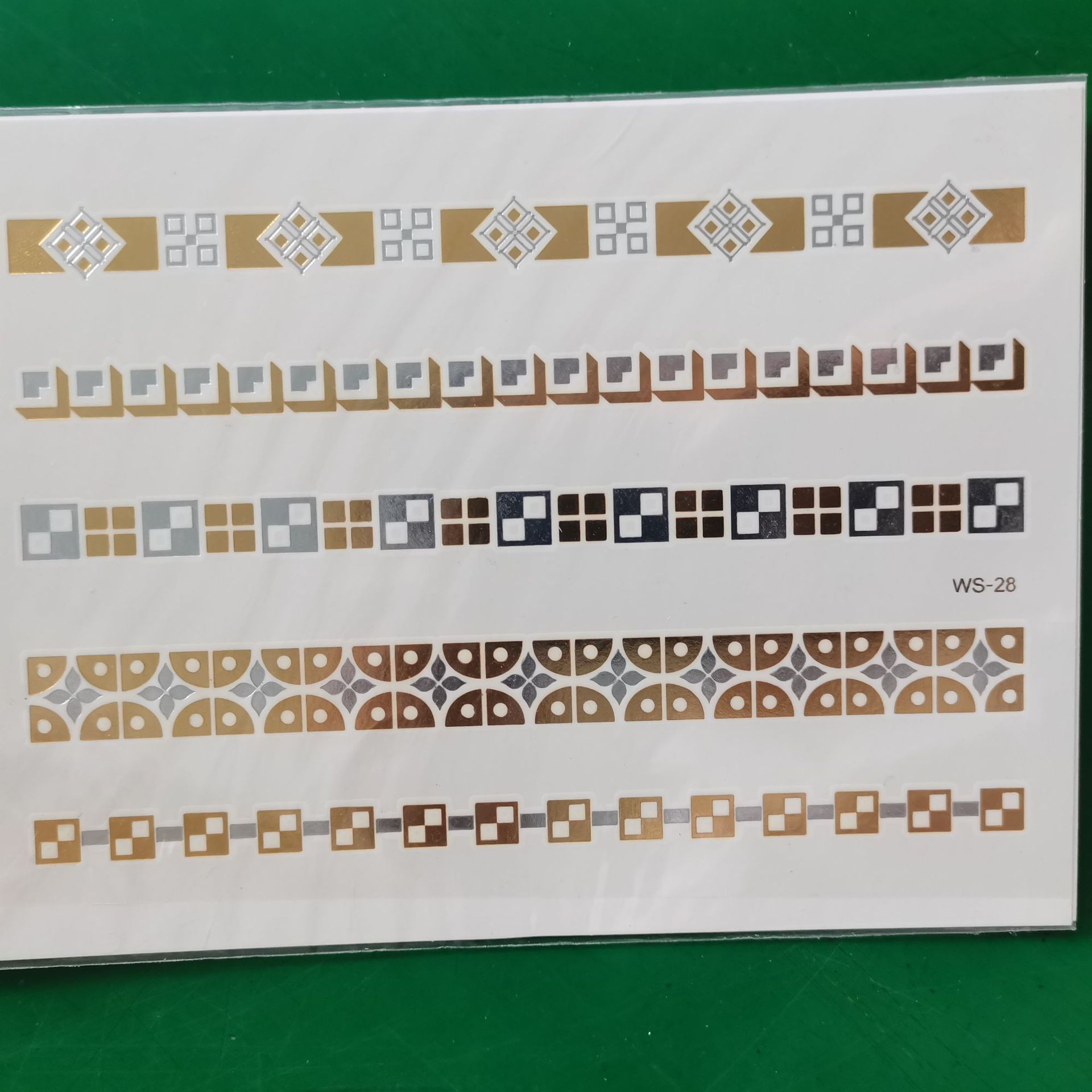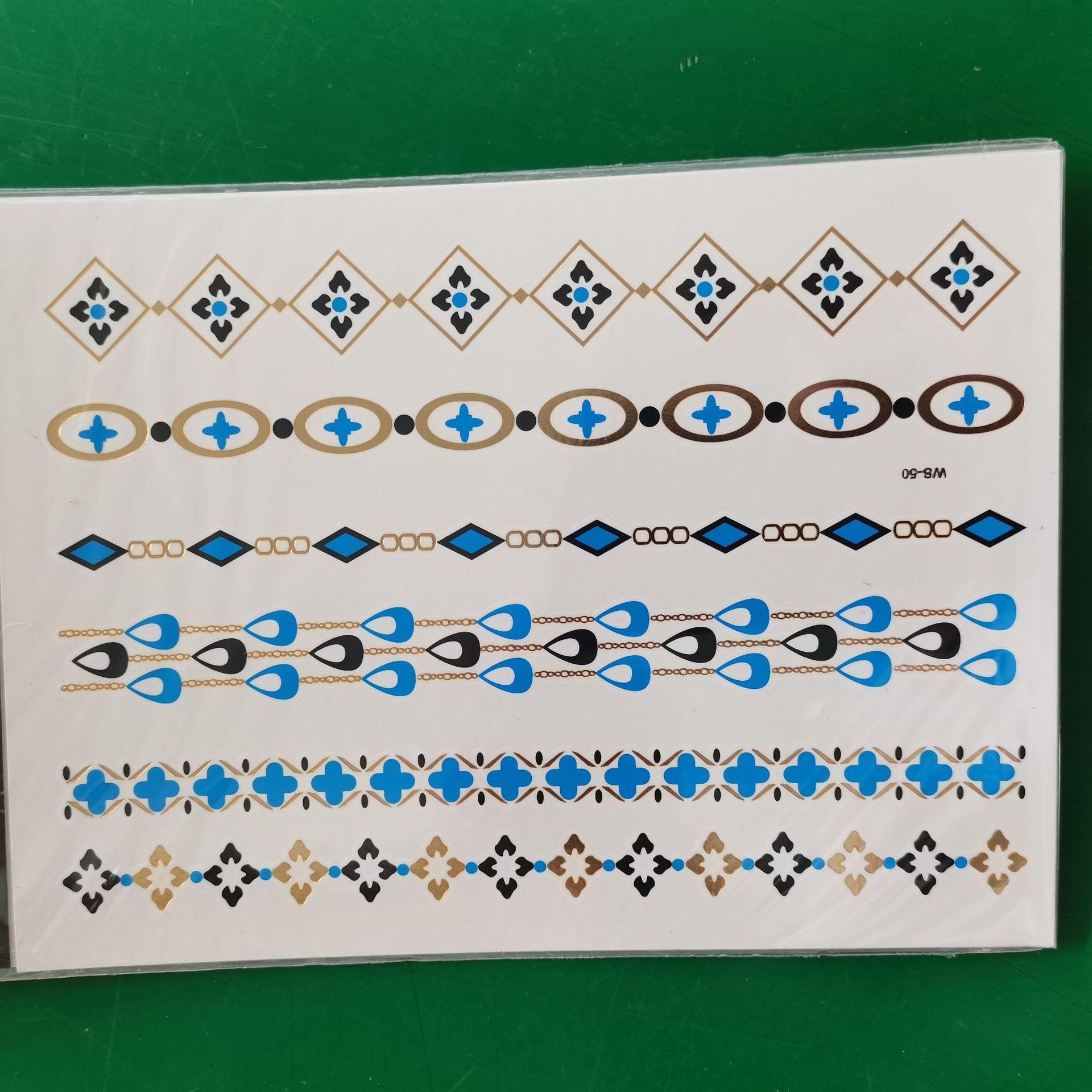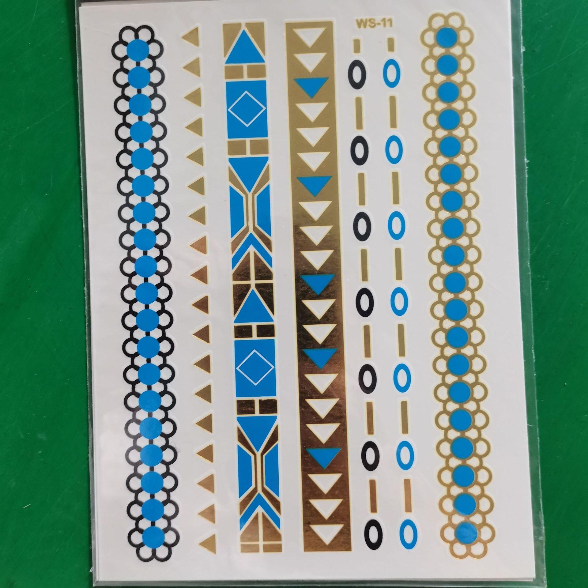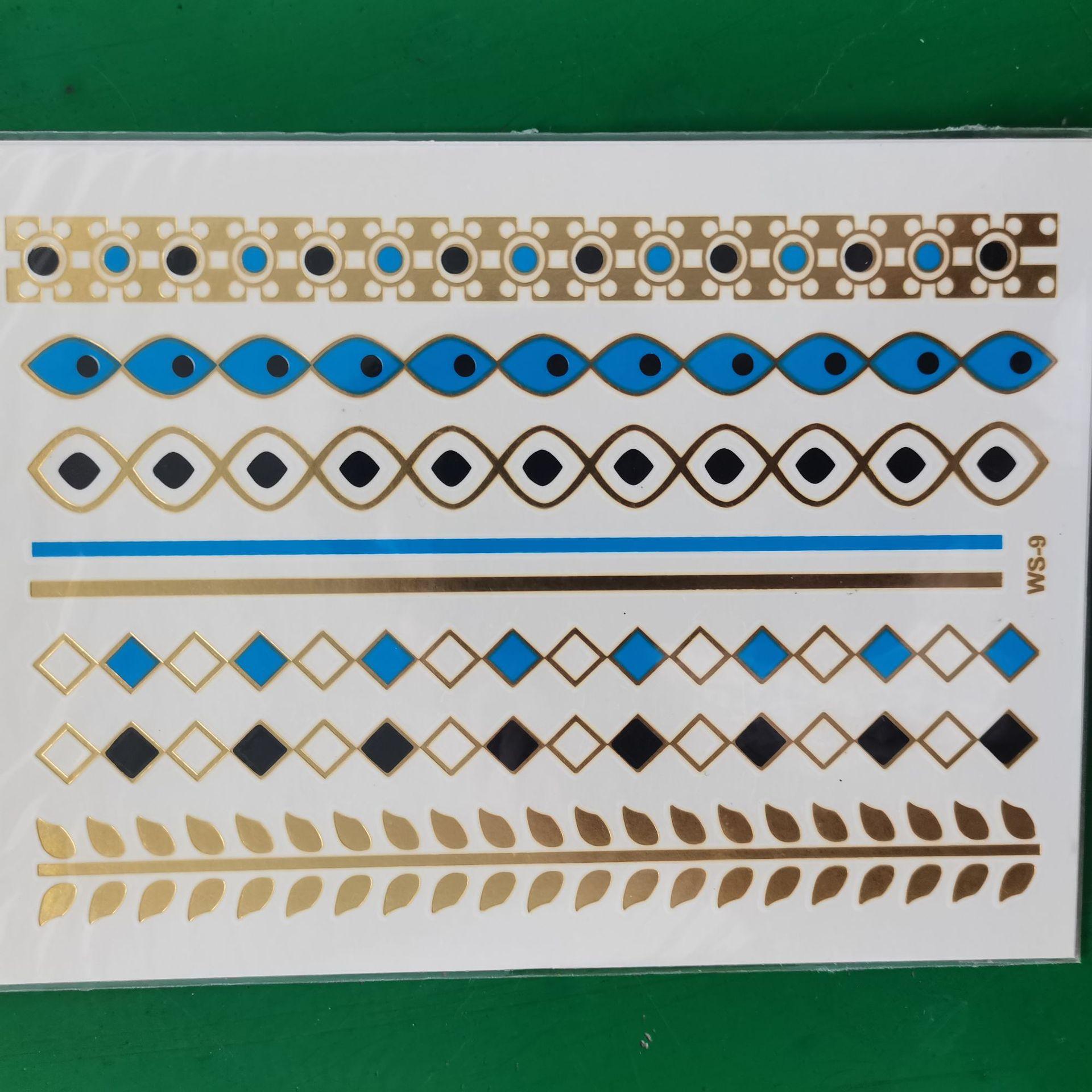 Pegatinas de tatuaje europeas y americanas, pegatinas corporales de oro y plata, pegatinas de tatuaje de forma geométrica de metal, pegatinas de flores en línea para el brazo, liquidación