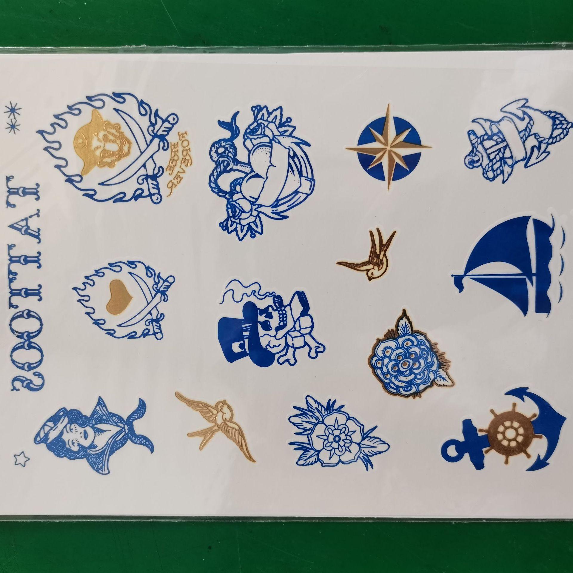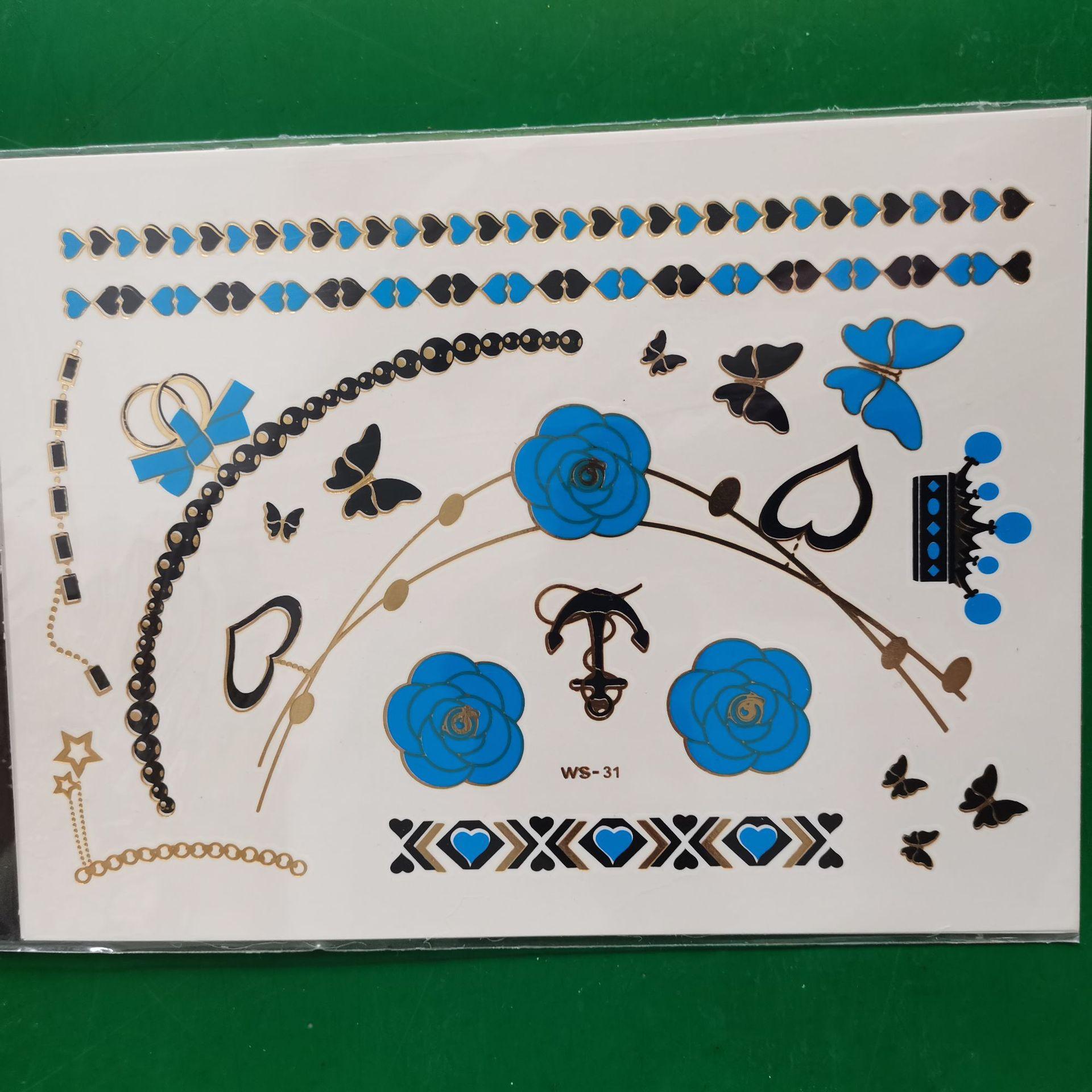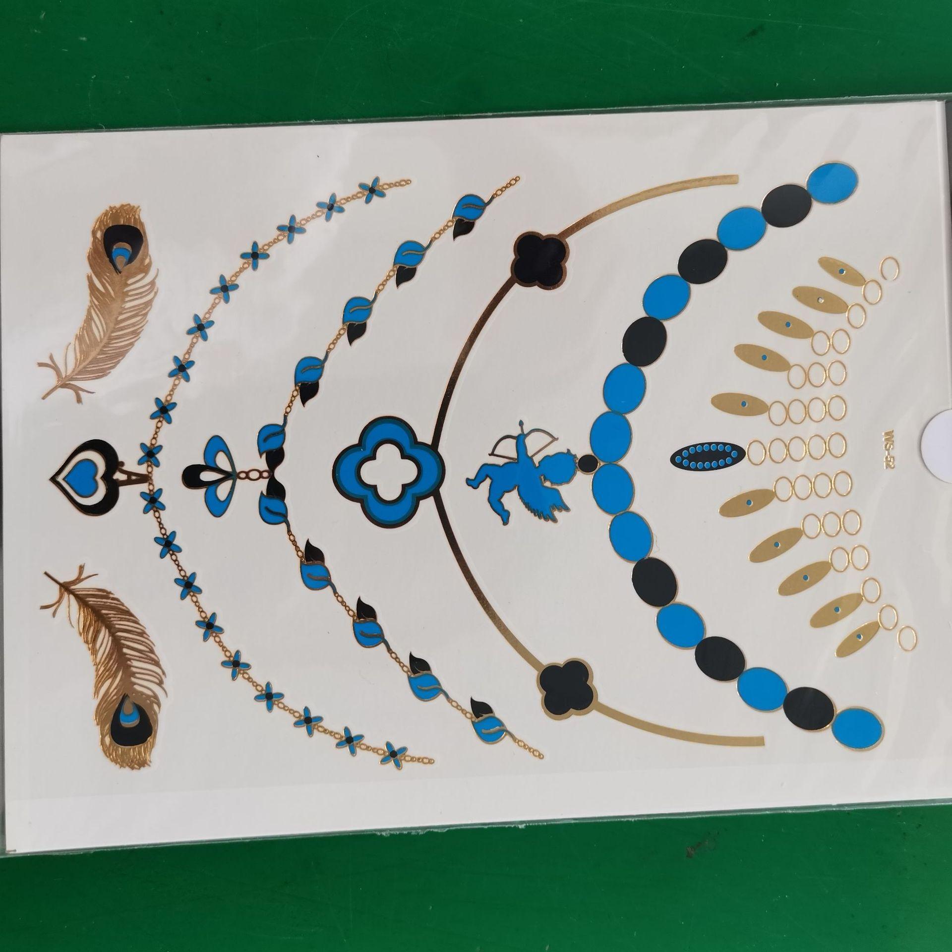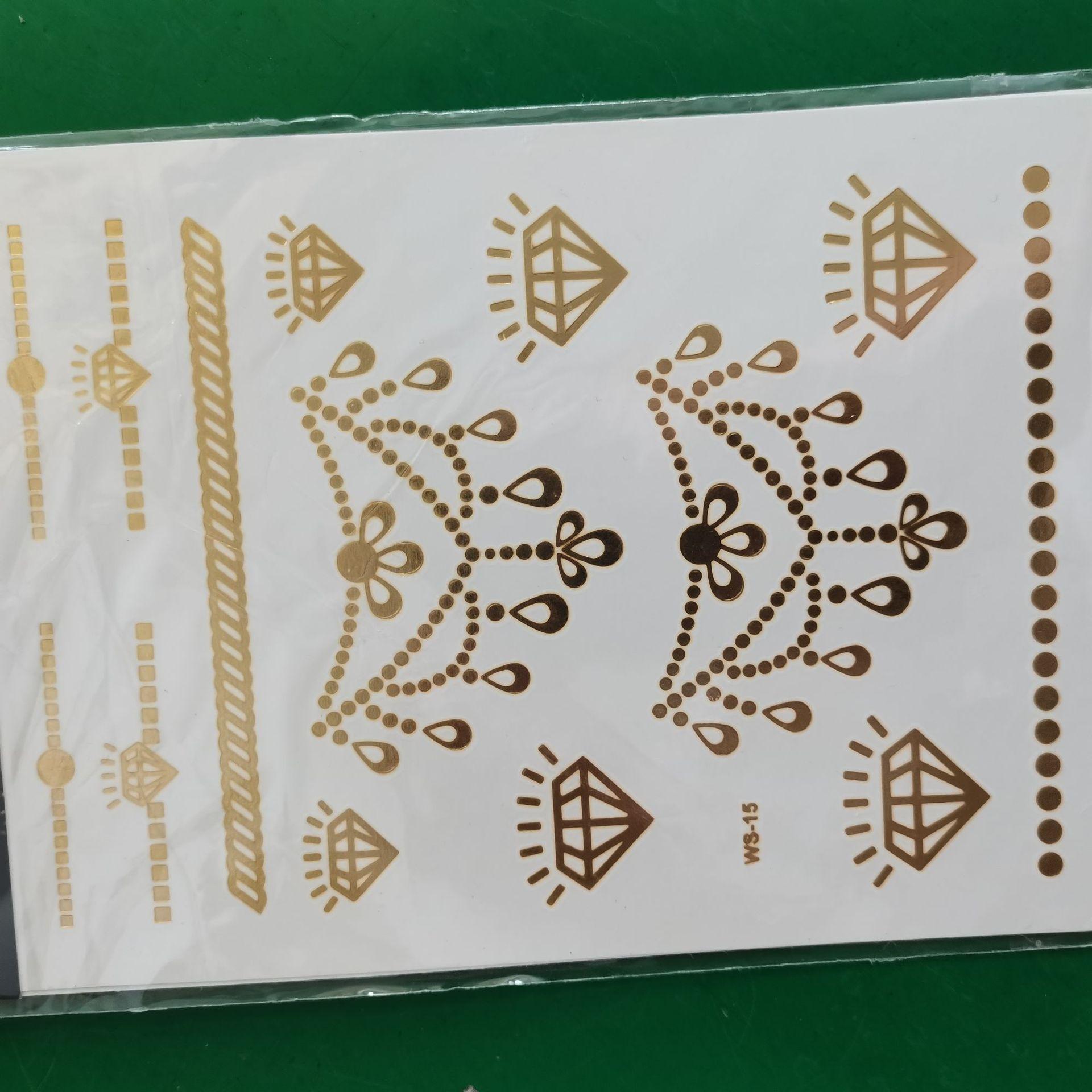 Pegatinas de tatuaje europeas y americanas, pegatinas corporales de oro y plata, pegatinas de tatuaje de forma geométrica de metal, pegatinas de flores en línea para el brazo, liquidación