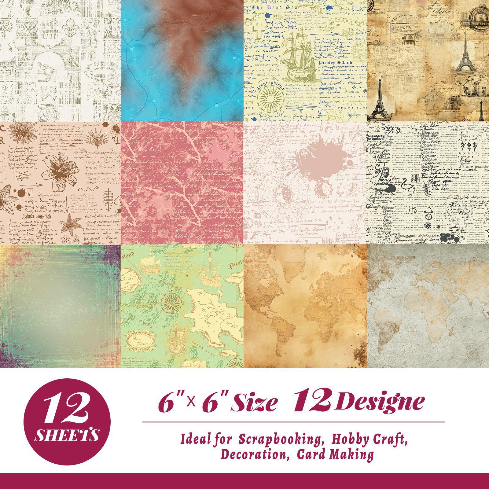 Vendo 12 hojas/paquete de papelería de mapas retro Amazon, tarjetas de álbum de recortes transfronterizas, papel de material no adhesivo