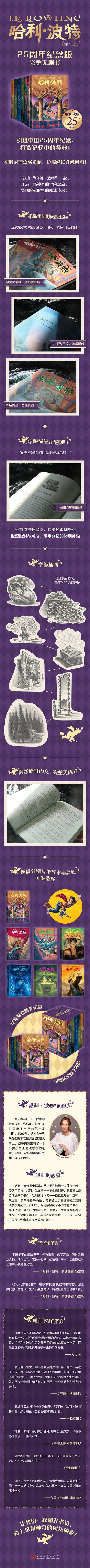 El libro cuenta la historia de Harry Potter, un huérfano que ha sido maltratado desde la infancia. En su undécimo cumpleaños, ¡Harry descubrió repentinamente que en realidad era un mago! Después de llegar a Hogwarts, Harry fue expuesto a muchas magias novedosas, conoció animales mágicos e hizo excelentes amigos. Sin embargo, la vida escolar no fue toda felicidad: Harry constantemente se encontró con los complots mortales y los ataques del terrible mago oscuro Voldemort. Harry y sus amigos y profesores vivieron aventuras juntos, y gradualmente aprendió sobre su propia experiencia de vida: hace muchos años, debido a una profecía, Voldemort consideró a Harry como su rival número uno y se coló en su casa para matarlo. Inesperadamente, el pequeño Harry sobrevivió gracias a la protección de su madre, pero el propio cuerpo de Voldemort fue destruido. Después de años de letargo y lucha, Voldemort regresó, y no solo Harry estaba en peligro, sino también todo el mundo mágico.