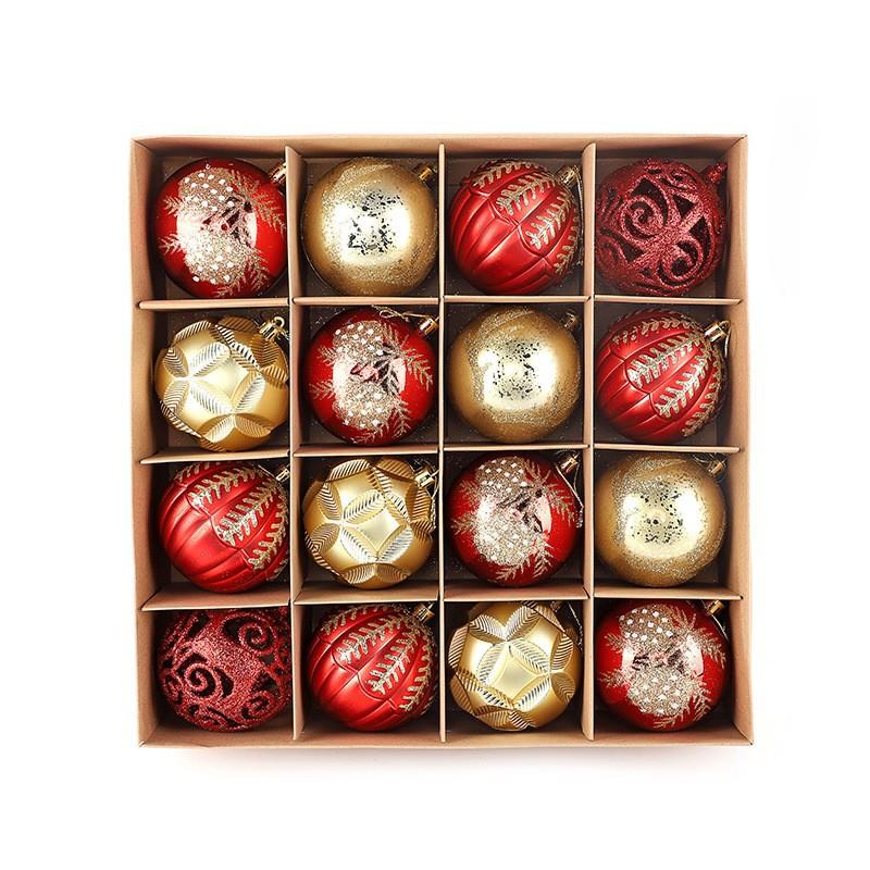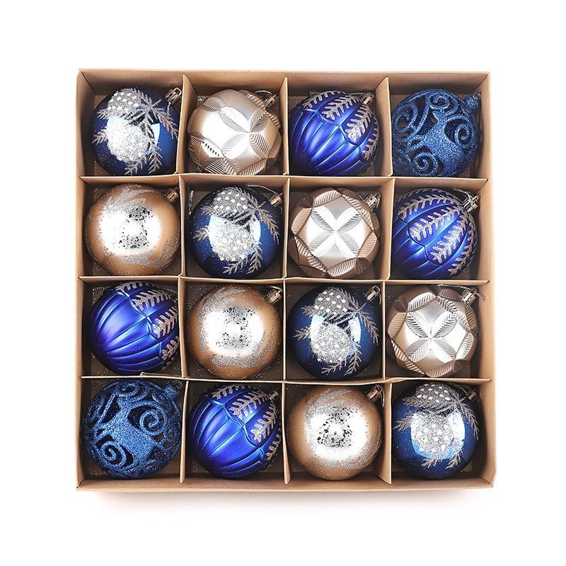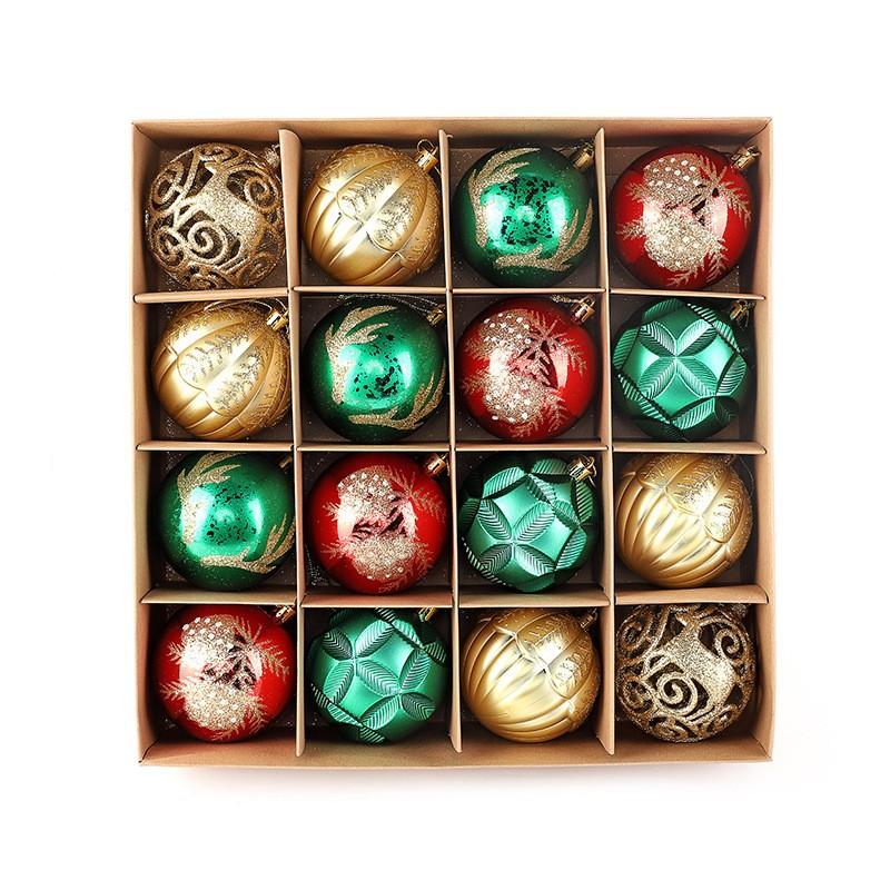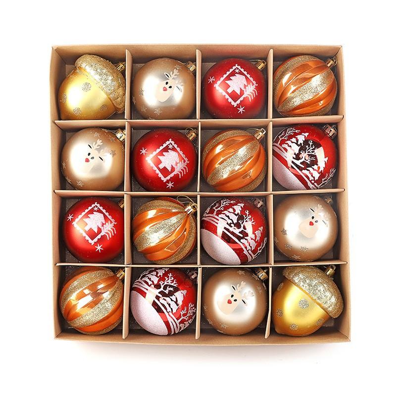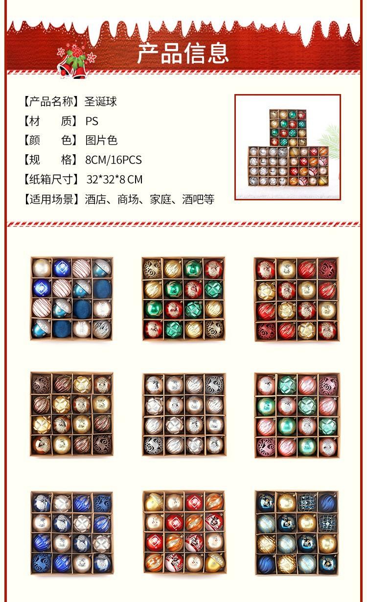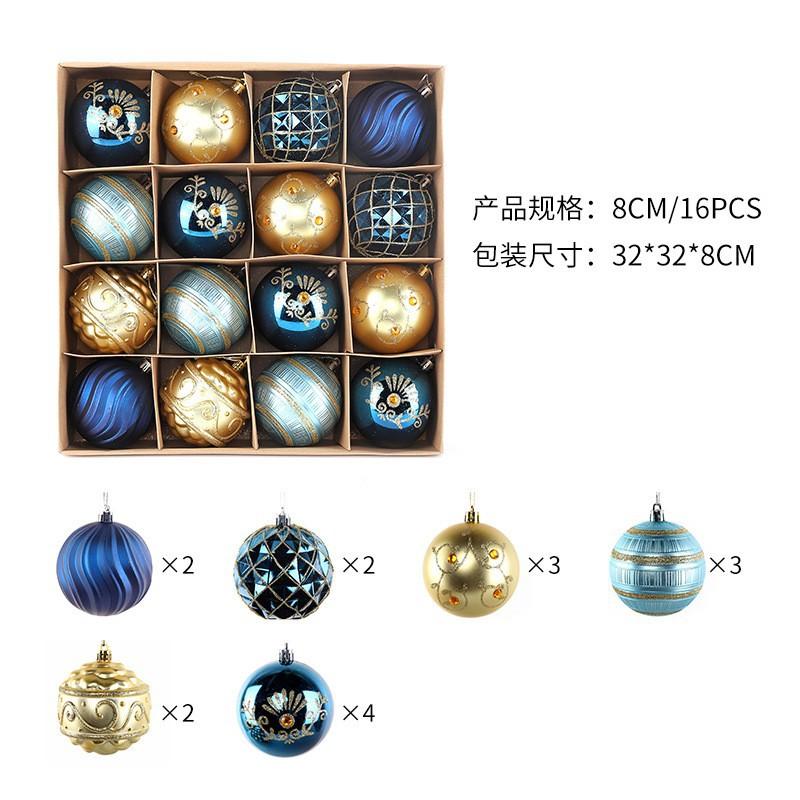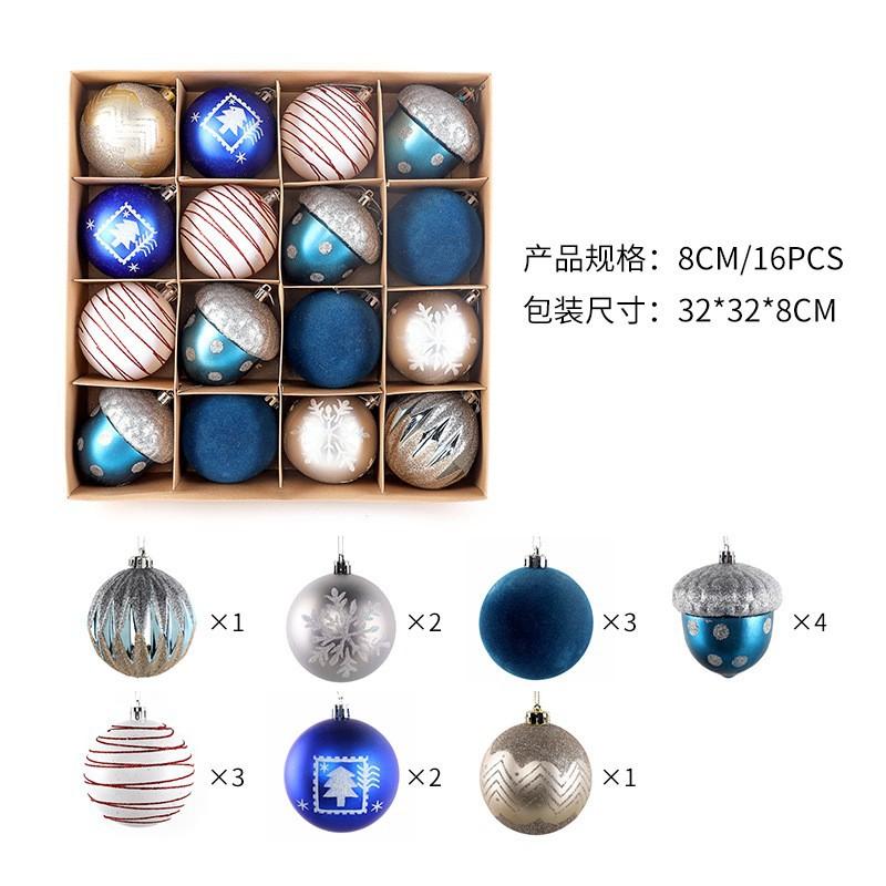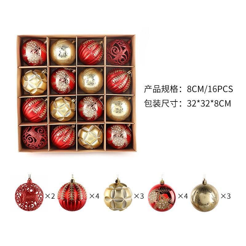 Nuevo Adorno Navideño Transfronterizo 8Cm/16 Piezas Juego de Plástico Galvanizado Pintado Colgante de Bola Navideña