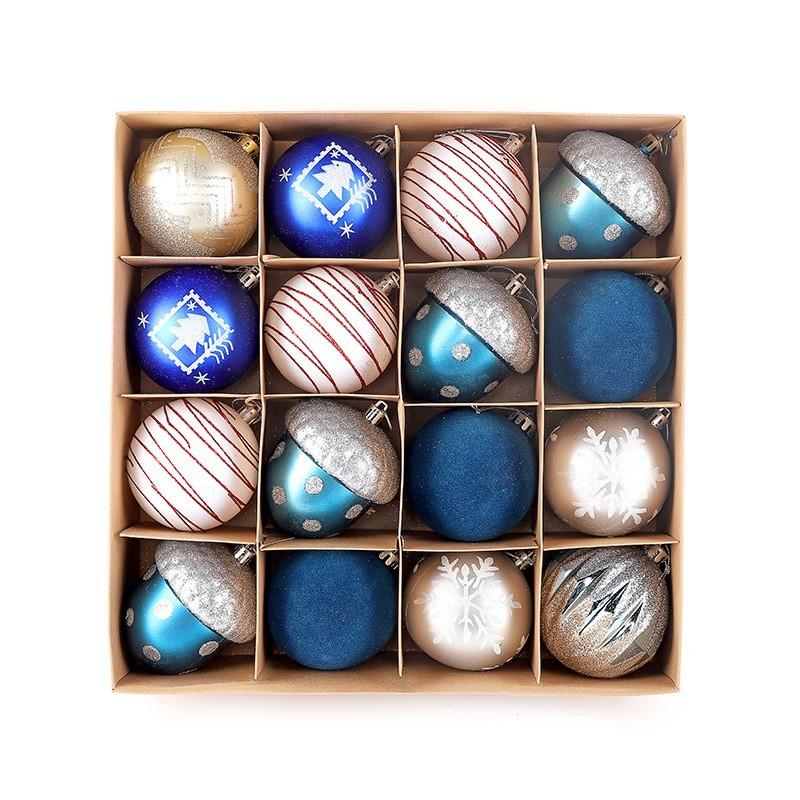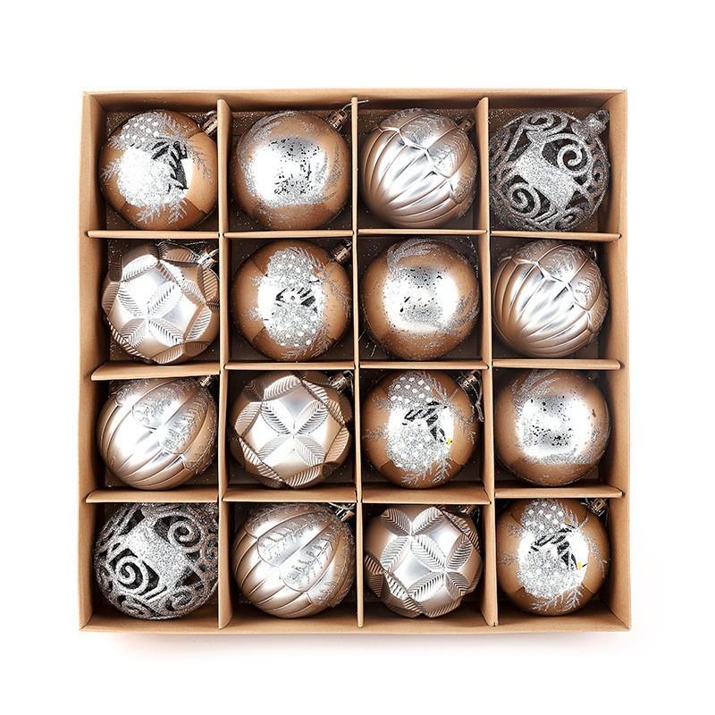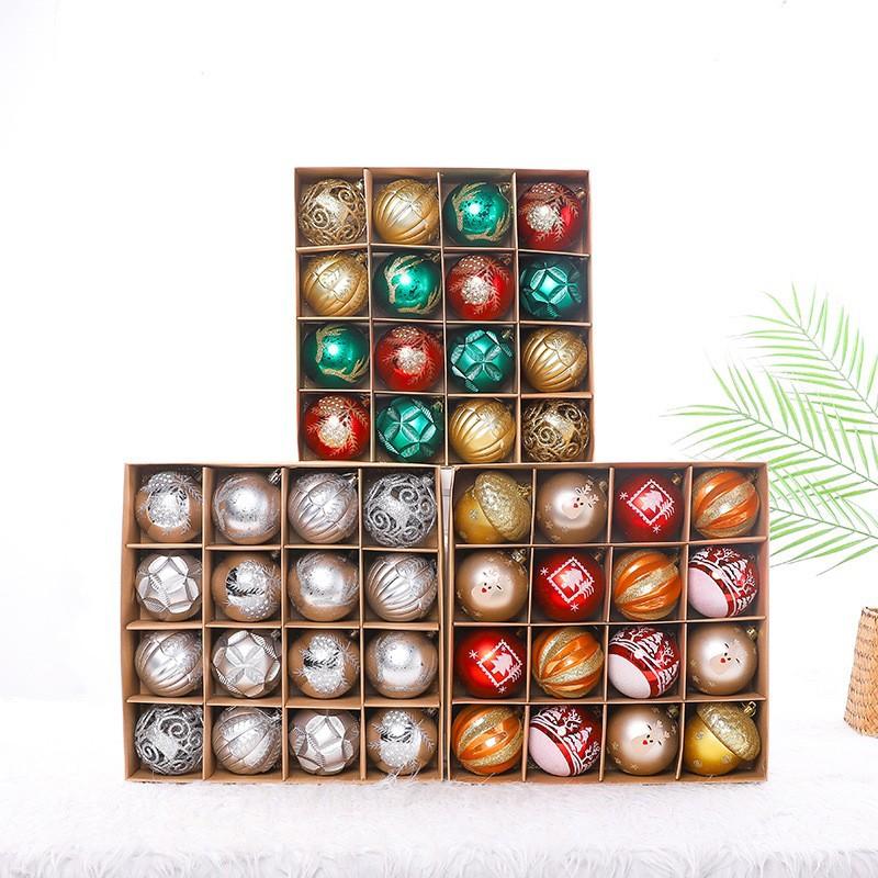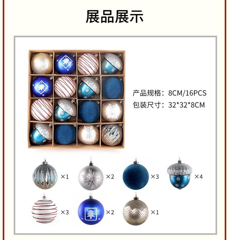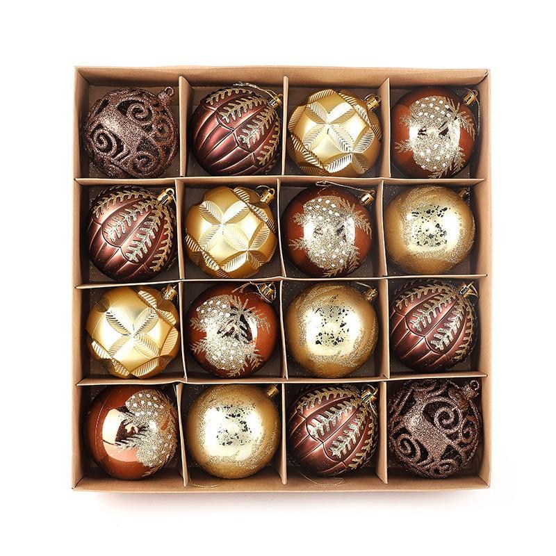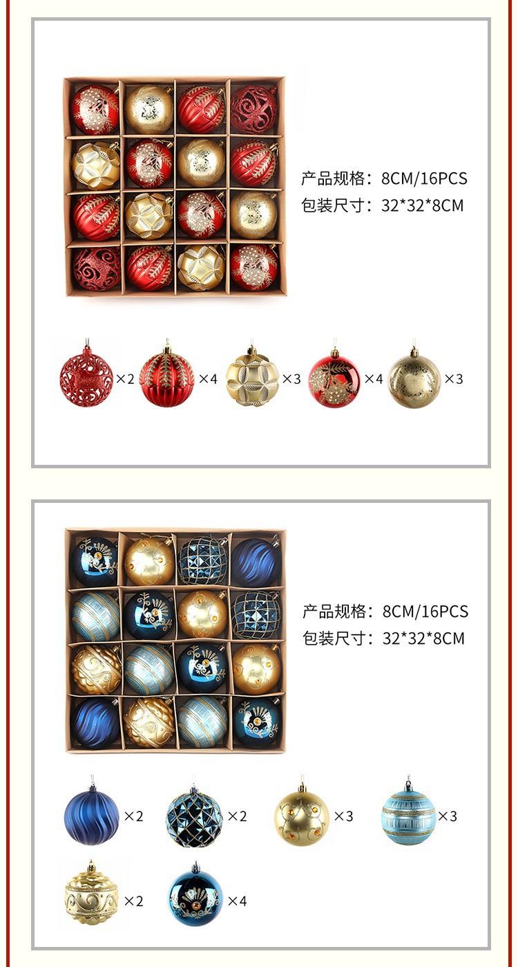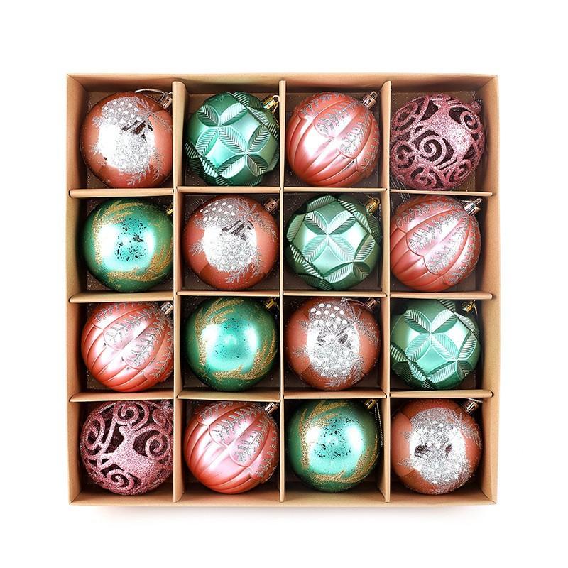 Nuevo Adorno Navideño Transfronterizo 8Cm/16 Piezas Juego de Plástico Galvanizado Pintado Colgante de Bola Navideña