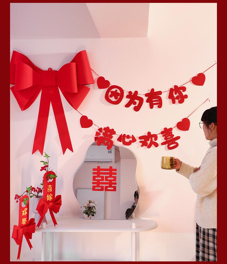 Decoración de lazo boda puerta de casa nueva pegatinas de boda traje de diseño de habitación de boda dormitorio de boda suministros de boda