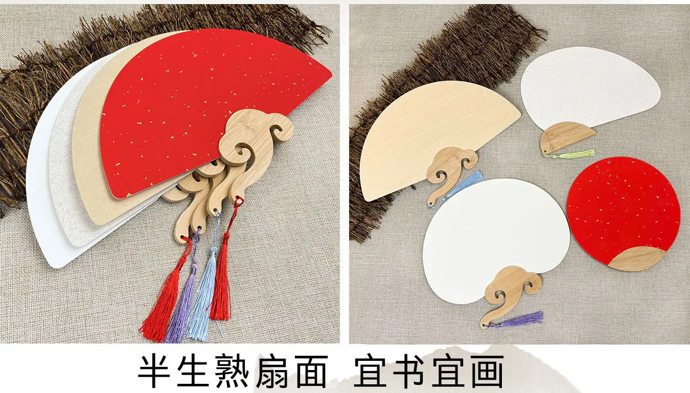 Ventilador Redondo Blanco Especial de Doble Cara para Transferencia de Pintura, Superficie de Ventilador Semi-Terminada para Creación de Caligrafía Pintada a Mano DIY, Ventilador de Pintura de PVC Estilo Antiguo