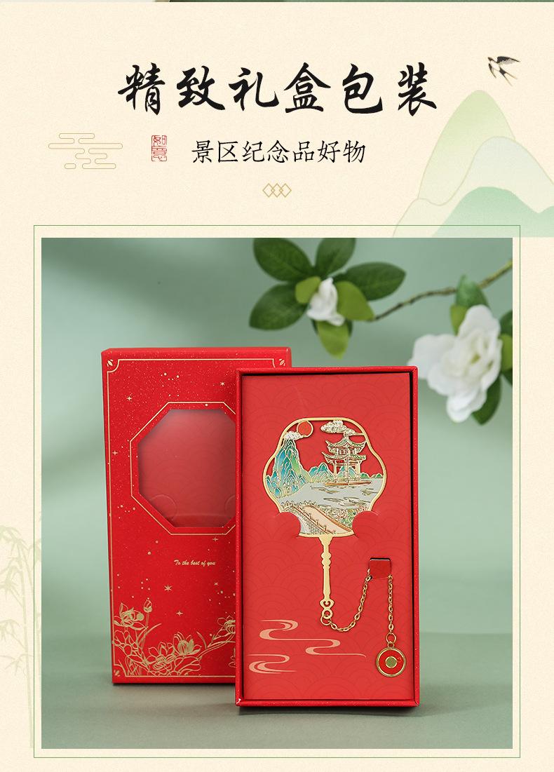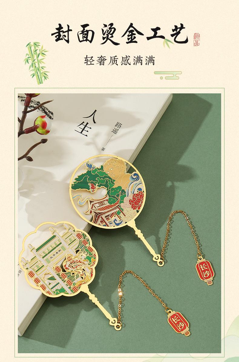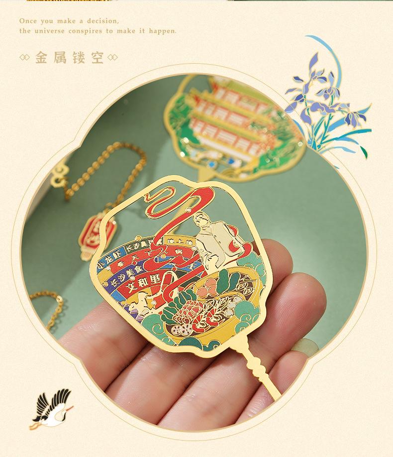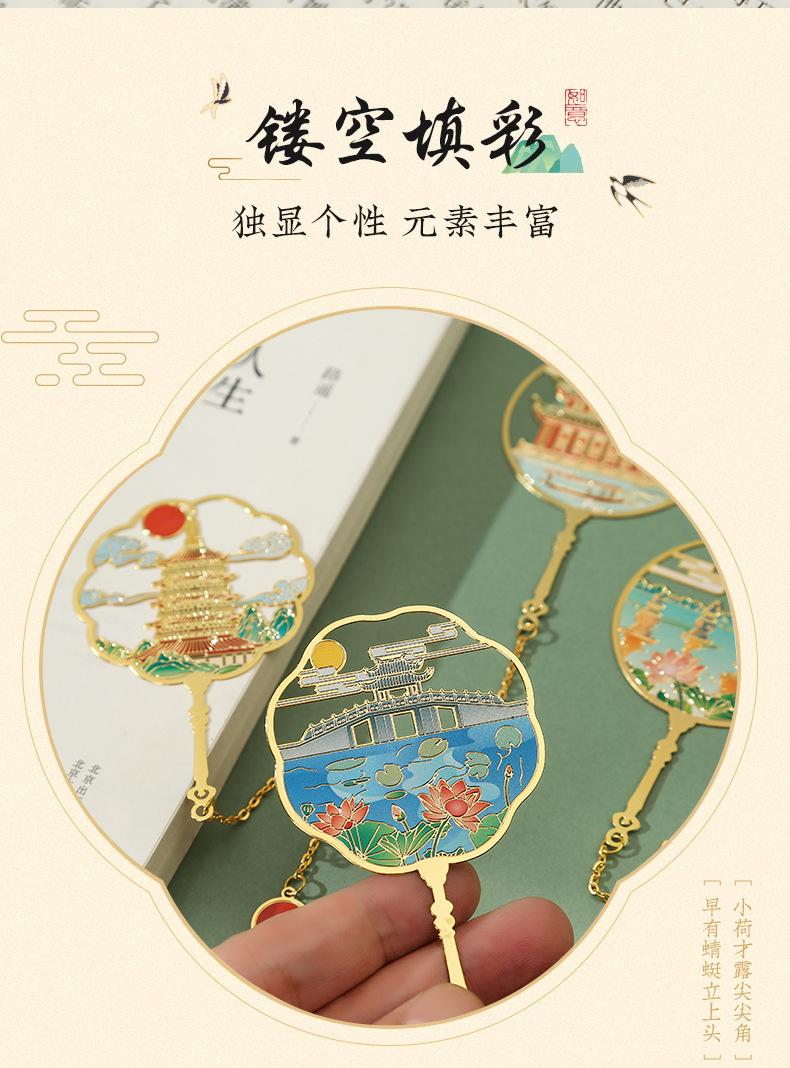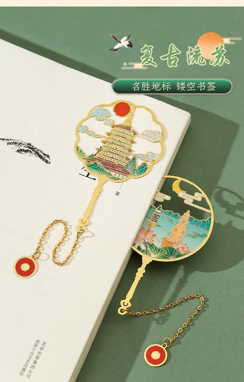 Marcapáginas de metal con forma de abanico de las Torres Gemelas de Nanchang, atracción turística, recuerdo cultural y creativo de estilo clásico chino.