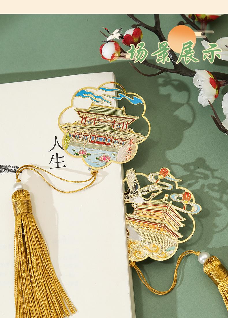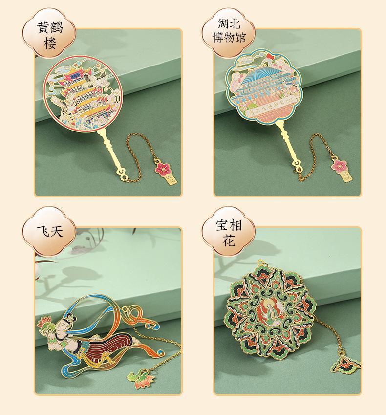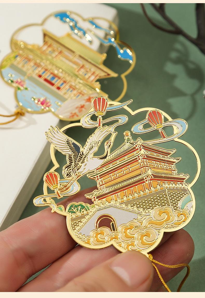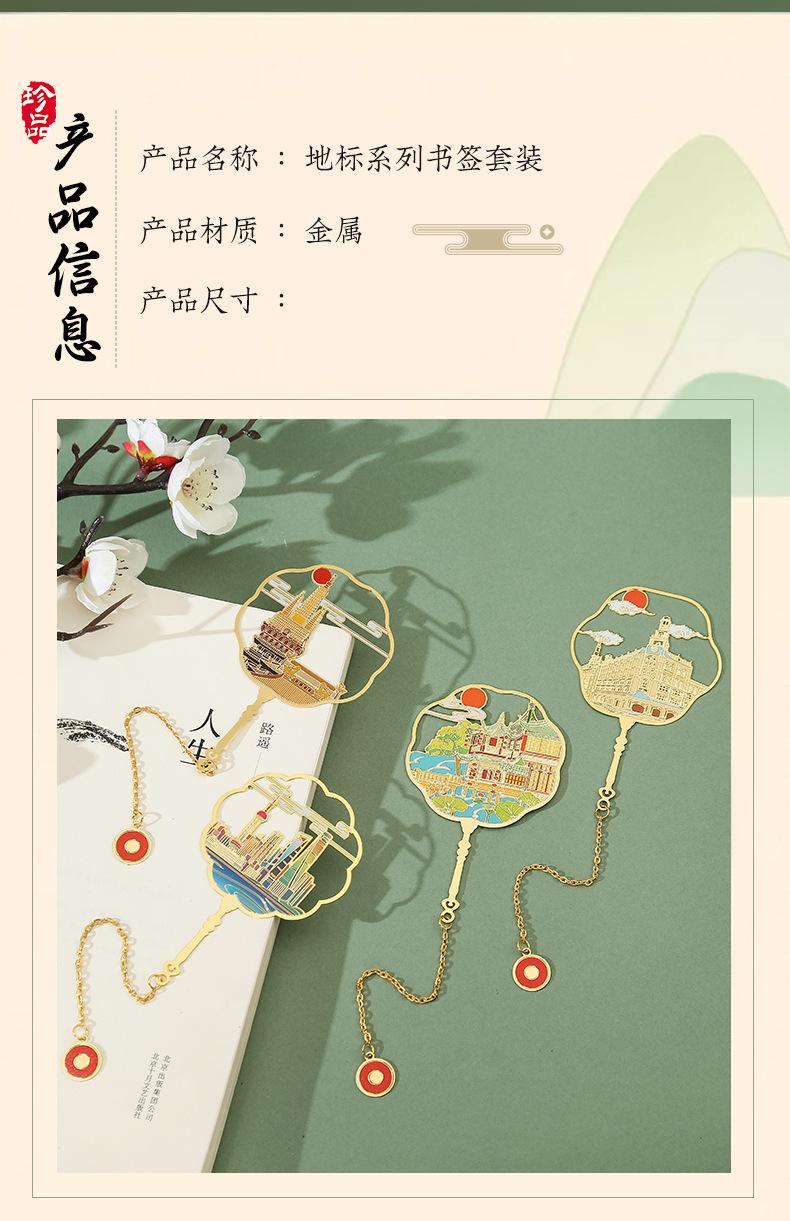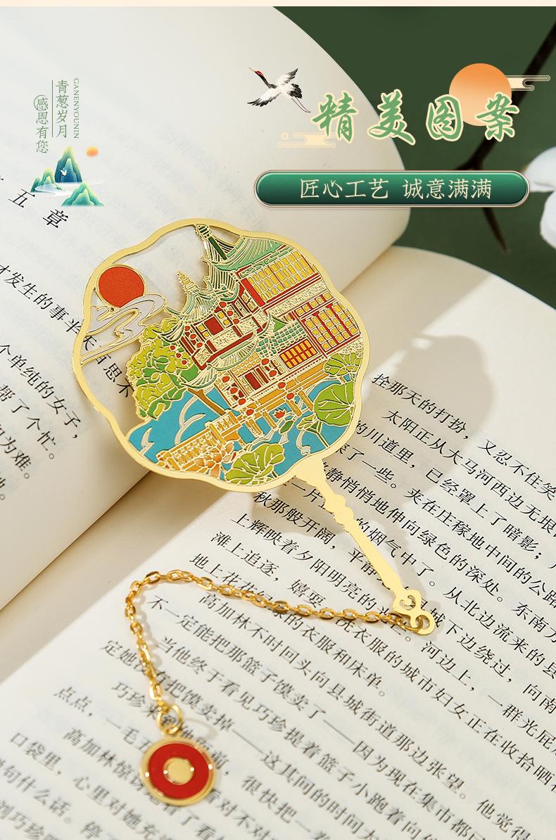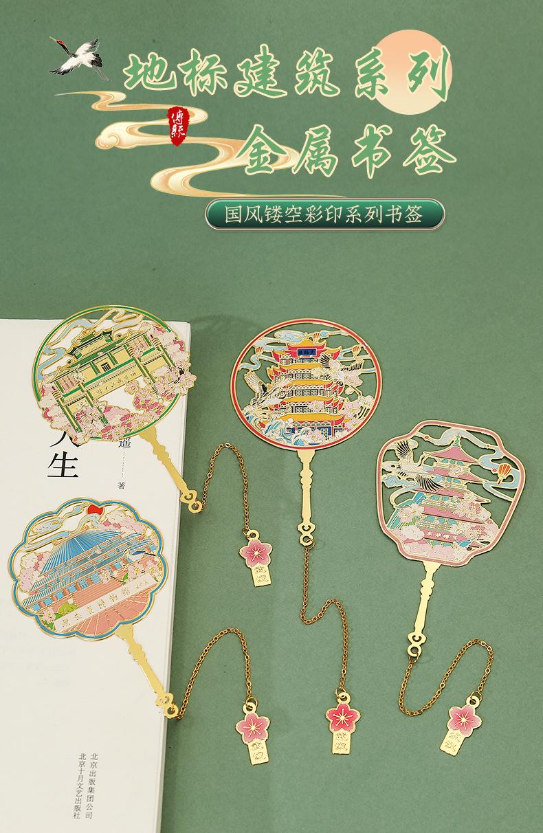 Marcapáginas de metal con forma de abanico de las Torres Gemelas de Nanchang, atracción turística, recuerdo cultural y creativo de estilo clásico chino.