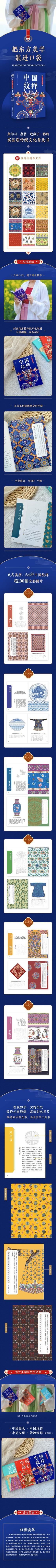 Este libro, de la serie "Estética Oriental de Bolsillo", se centra en patrones. Selecciona más de 60 patrones tradicionales y los clasifica según temas como la belleza geométrica, la naturaleza, los insectos, las flores y los pájaros, las bestias auspiciosas y el origen de todas las cosas. Los tipos de patrones son diversos, como el brocado, el Hui, el Panchang, el dragón, el león, el Qilin y el Bogu. Cada patrón incluye una introducción, un dibujo lineal de elementos, una presentación de reliquias culturales, una imagen de alta definición y otros contenidos.
