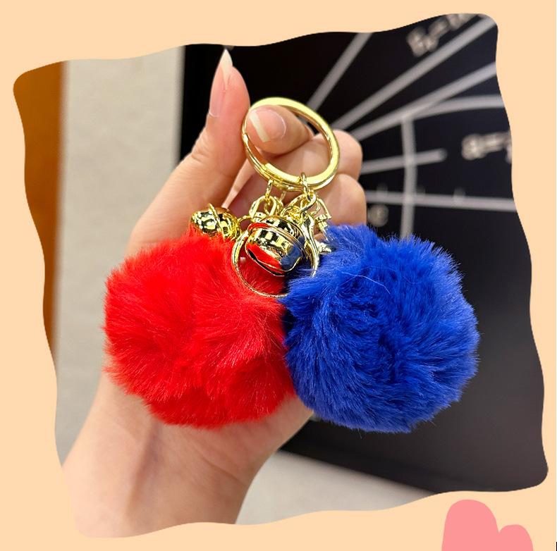 Llavero con colgante de bola de pelo de conejo rex de imitación transfronterizo para coche, bonito adorno para bolso, regalo de cumpleaños para mujer