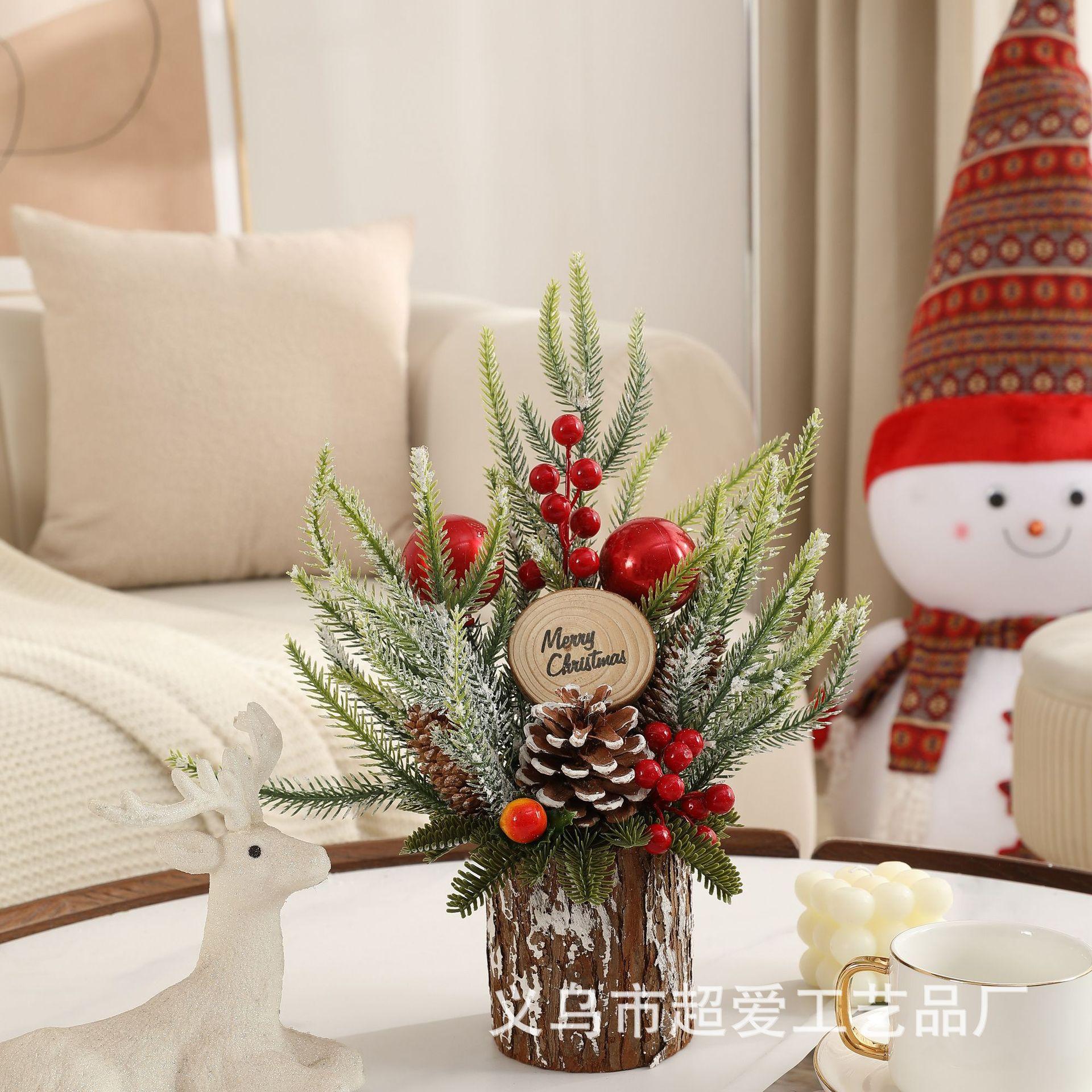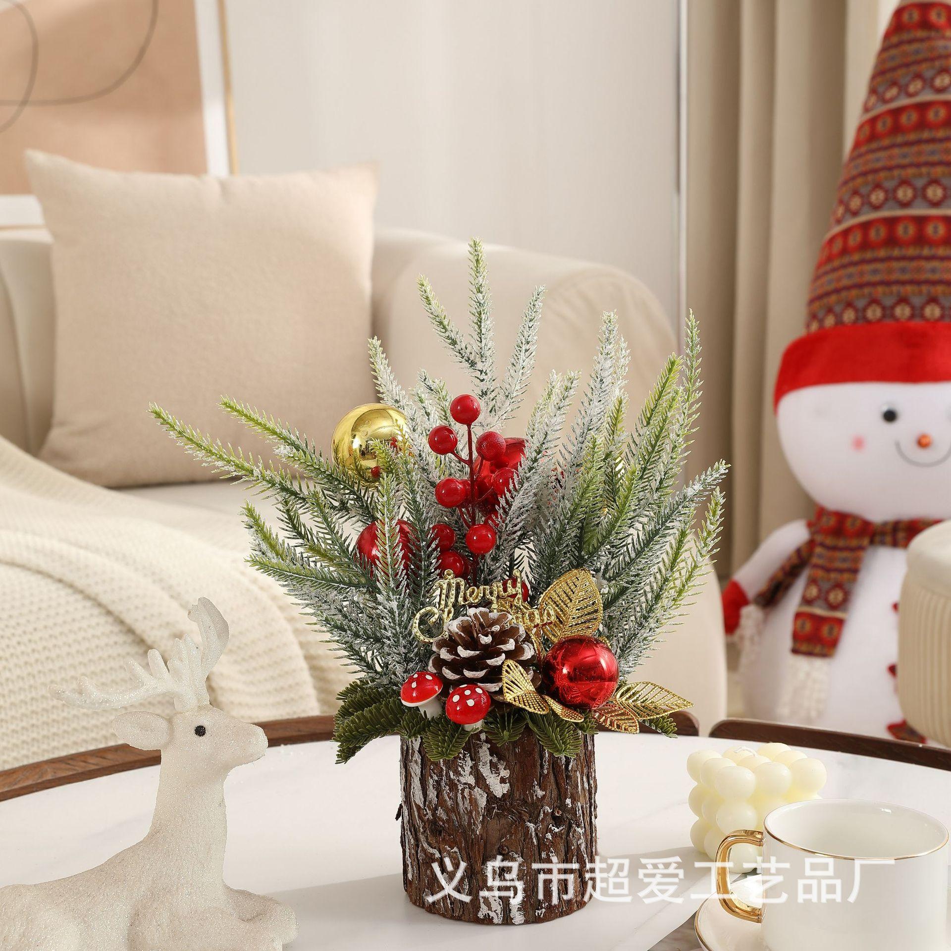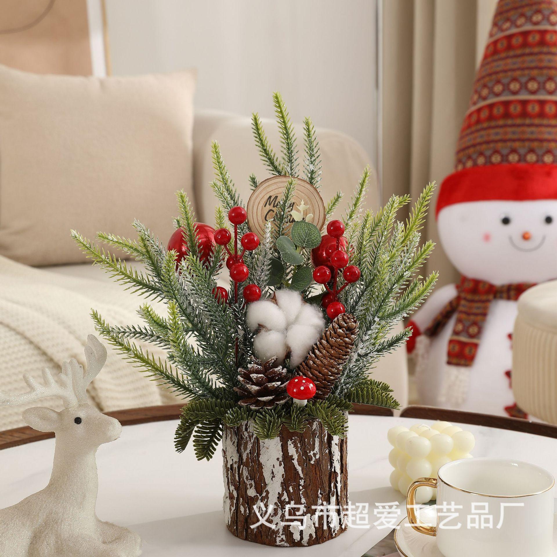 Decoraciones navideñas transfronterizas 30 cm flocado piña simulación mini árbol de Navidad decoración de escritorio para ventana de hogar