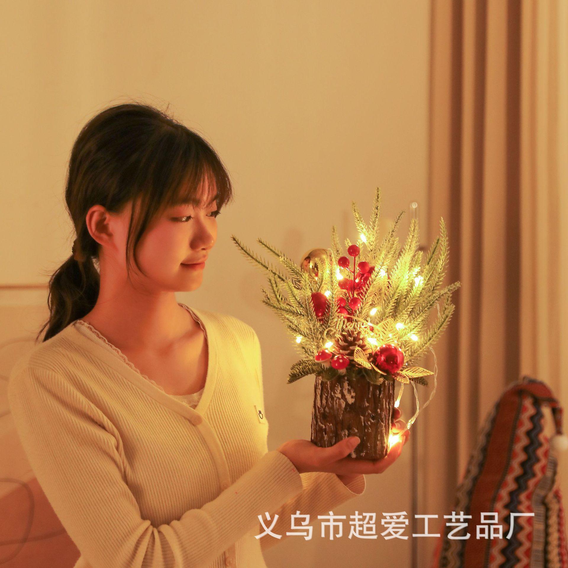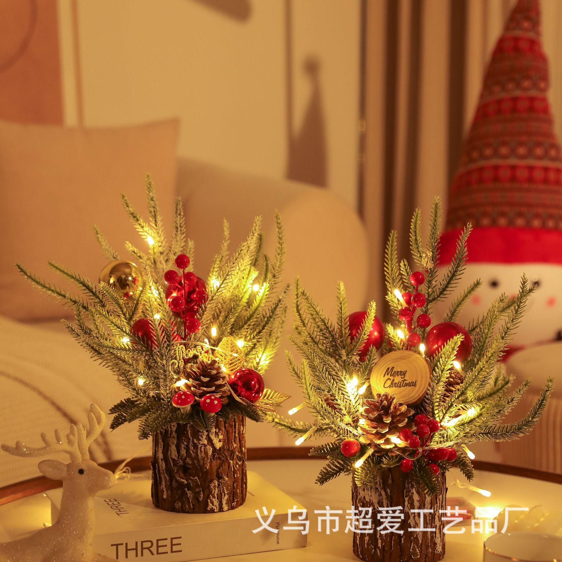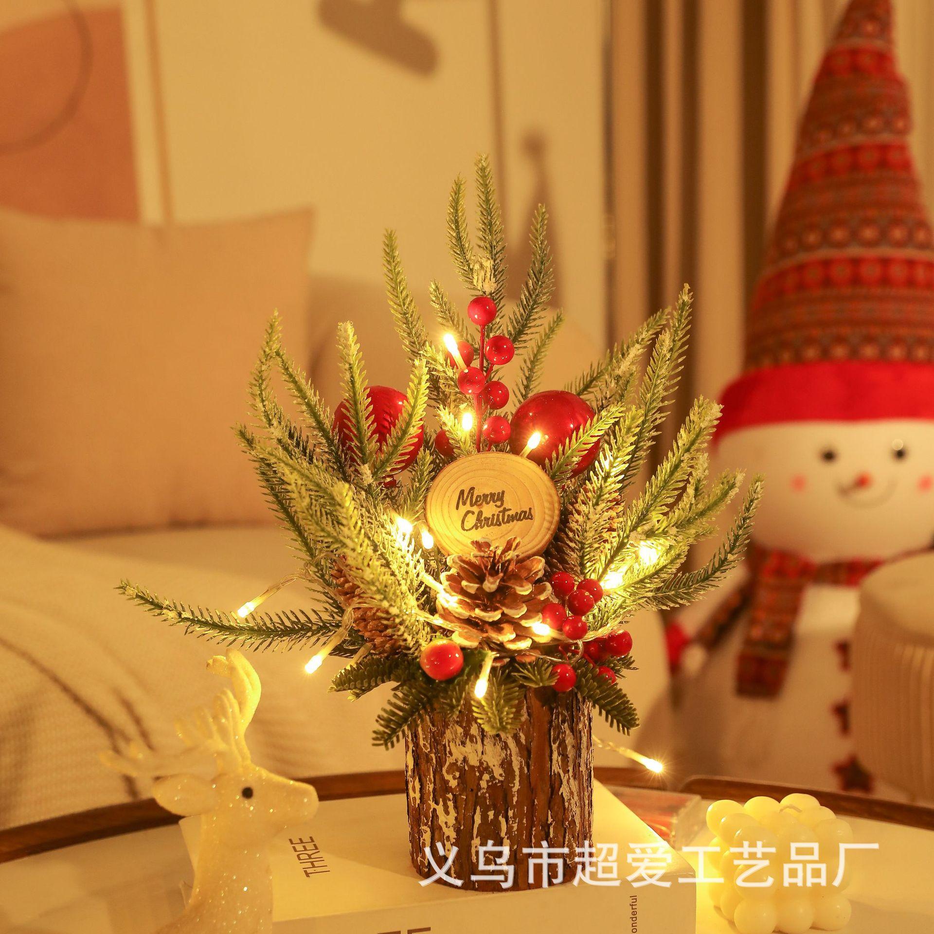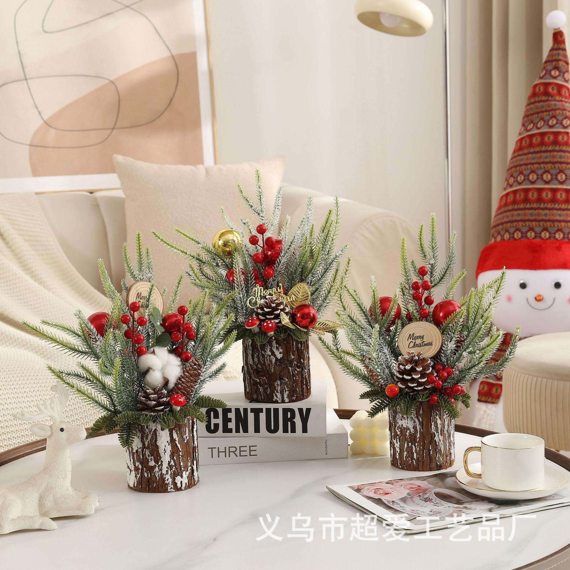 Decoraciones navideñas transfronterizas 30 cm flocado piña simulación mini árbol de Navidad decoración de escritorio para ventana de hogar