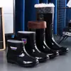 Botas de lluvia para hombre, de suela gruesa, resistentes al desgaste, impermeables, antideslizantes, para obras de construcción, cortas, de goma, de caña baja, para otoño