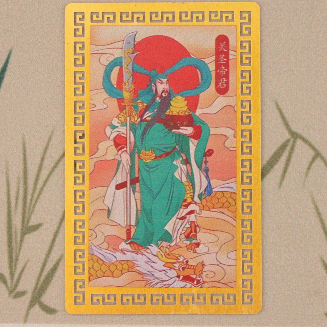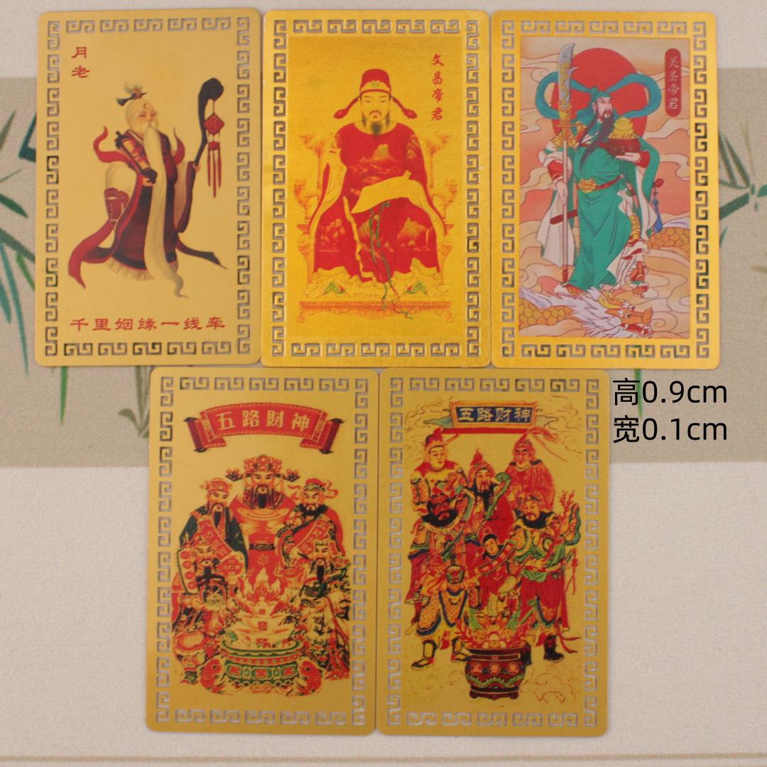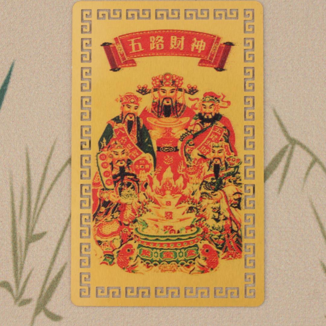 Cinco Vías Dios de la Riqueza Teléfono Móvil Tarjeta de Buda Adornos Portátiles Adornos para Carcasa de Teléfono Móvil Tarjeta de Aleación de Aluminio Dios de la Riqueza Tarjeta Dorada para Teléfono Móvil