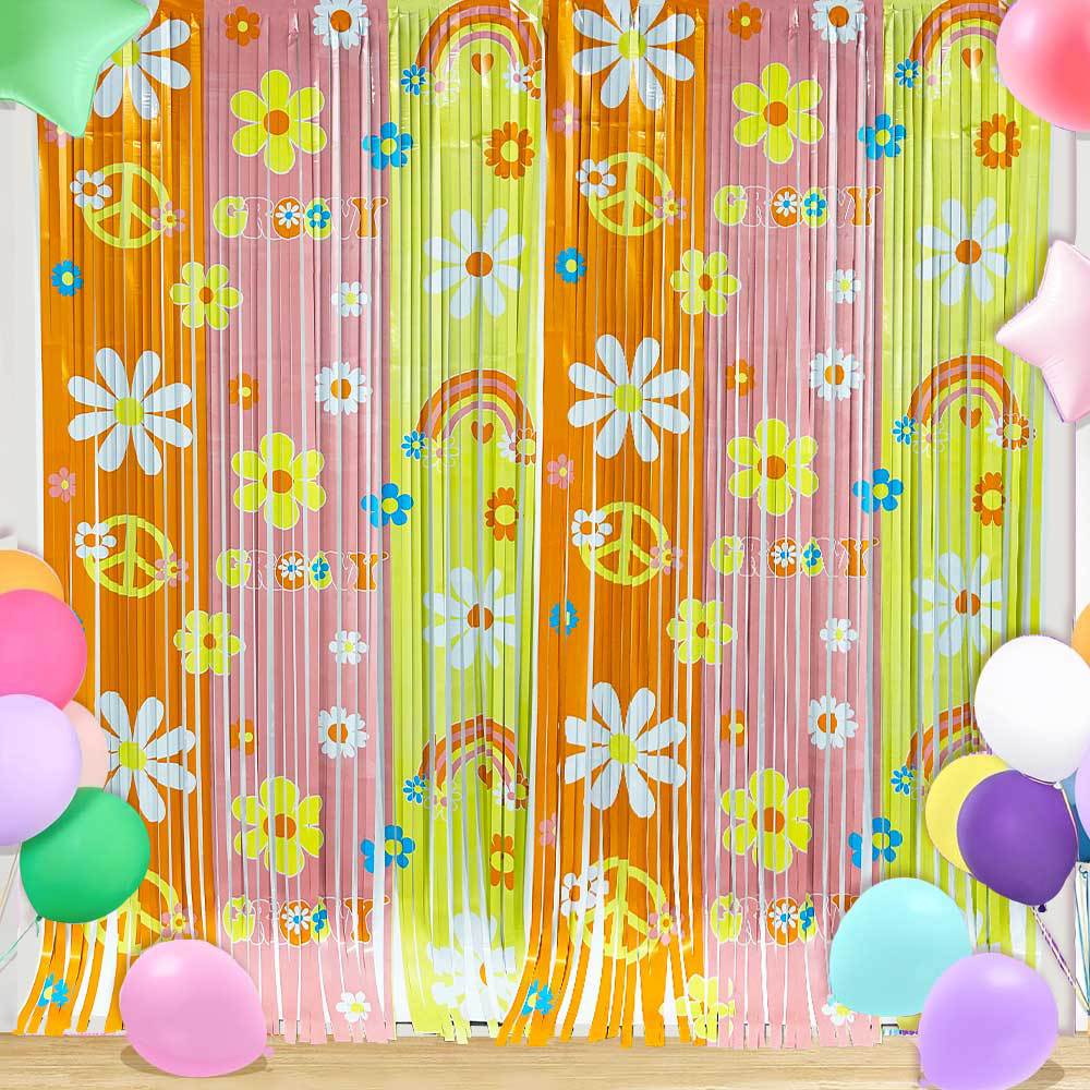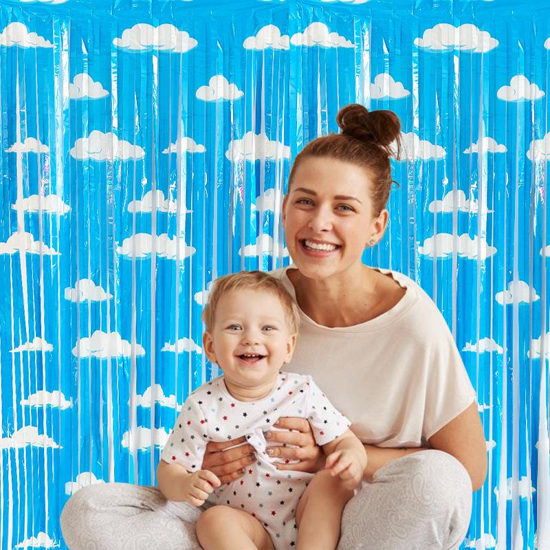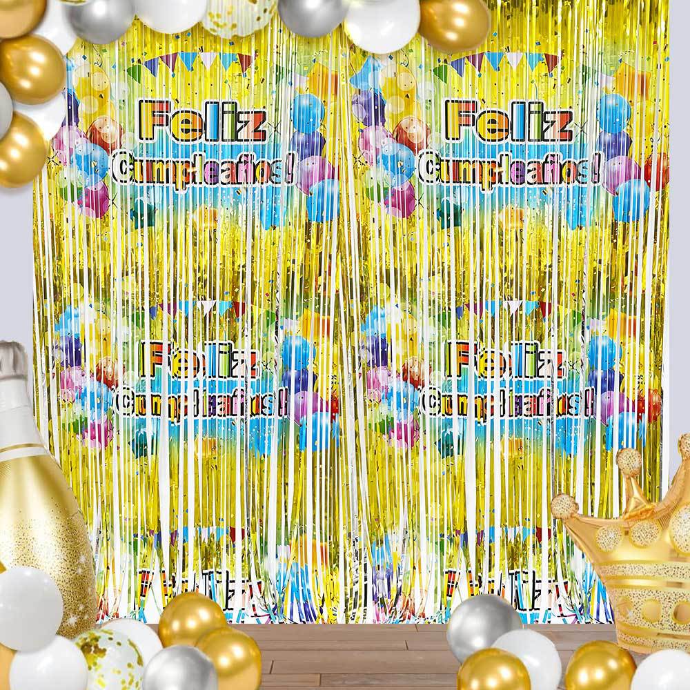 Cortina de Lluvia de Seda con Estampado Personalizado 1*2m Decoración de Fiesta Fondo Cumpleaños Boda Ambiente de Festival Diseño con Borlas