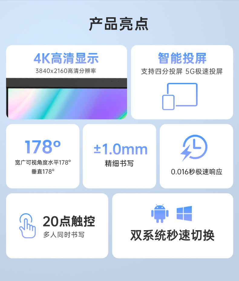 Tableta de conferencia de 100 pulgadas enseñanza todo en uno pantalla táctil multimedia pantalla inalámbrica 4k pizarra electrónica inteligente