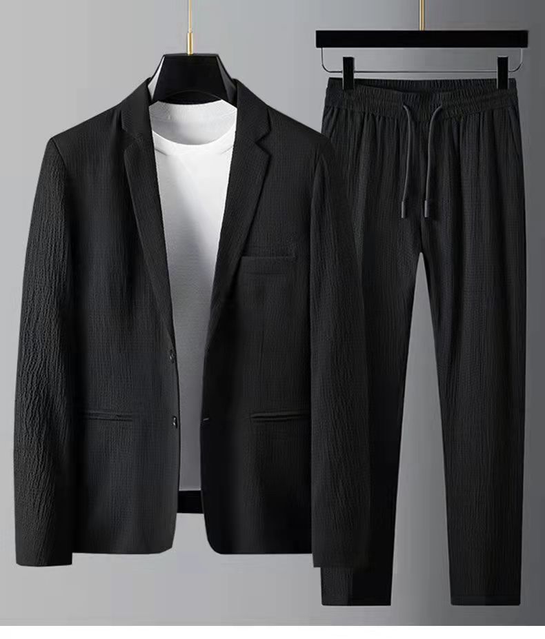 Traje de primavera para hombre, traje informal de manga larga de alta gama, estilo coreano, ajustado y elegante, conjunto de dos piezas.