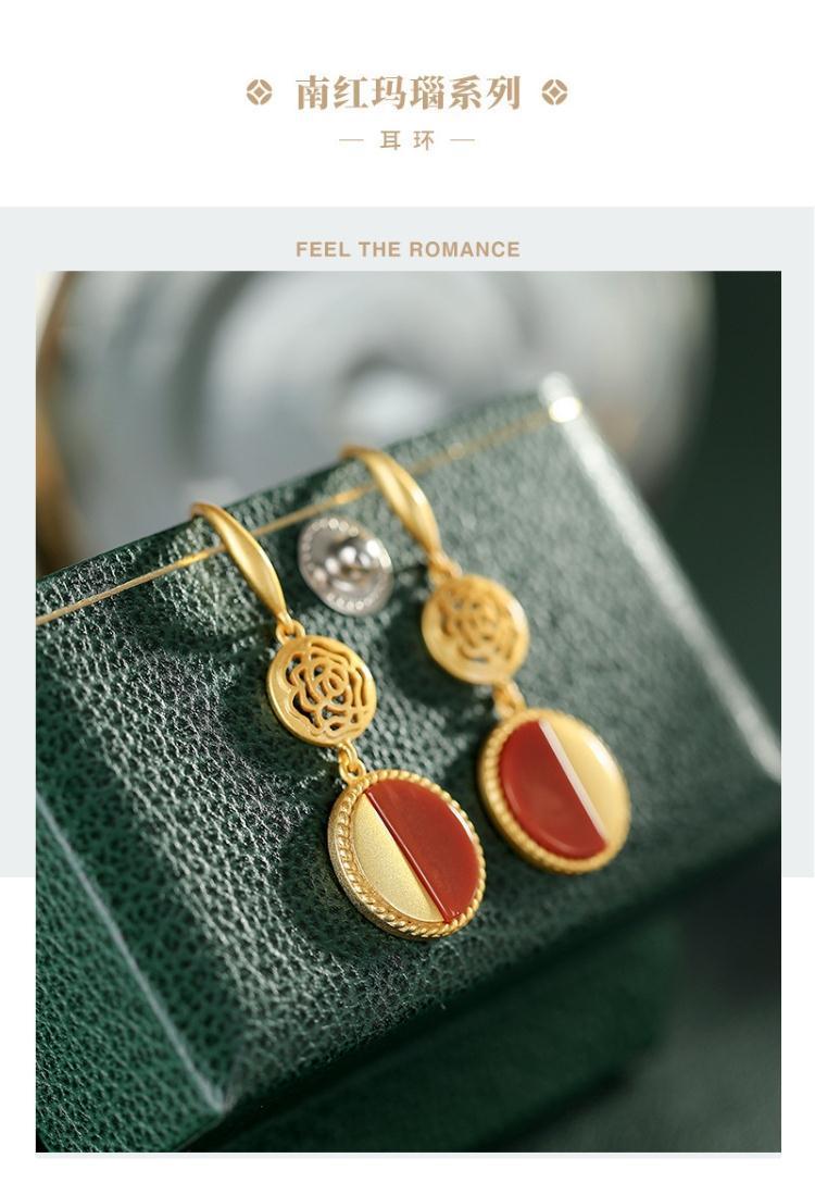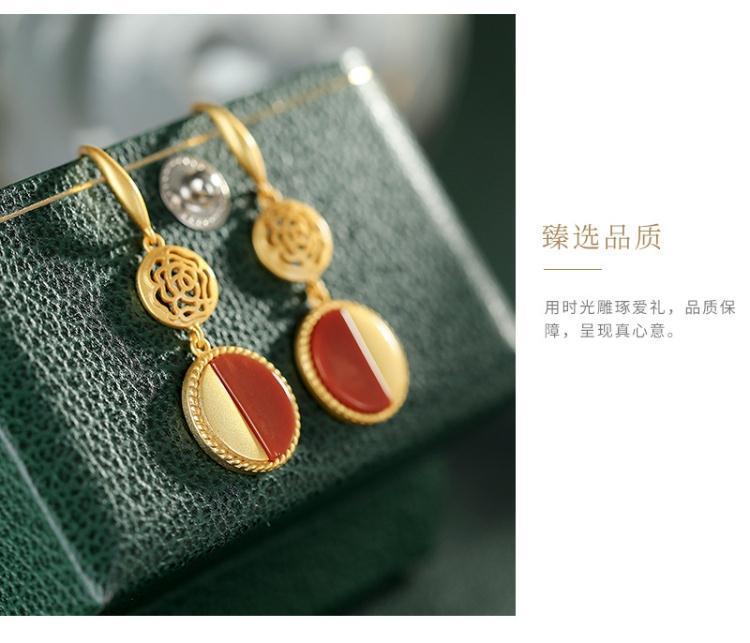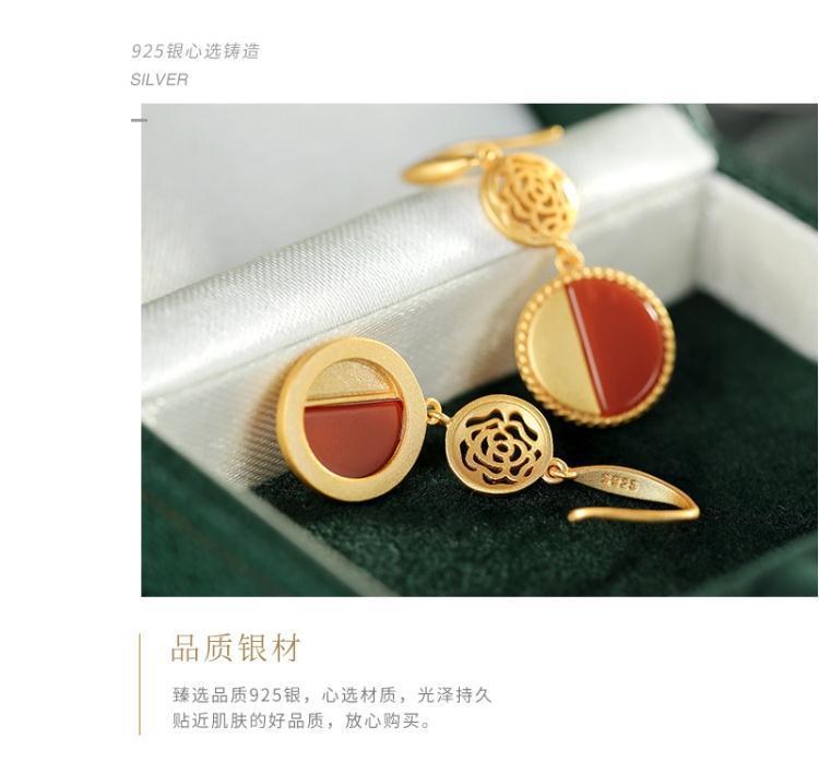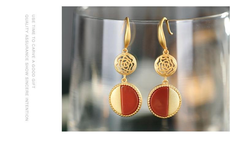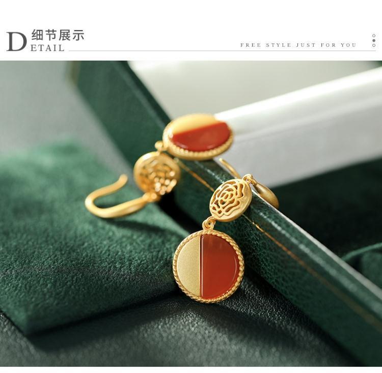 Pendientes de Estilo Moderno con Incrustaciones de Oro Rojo del Sur Chapado, Personalidad Retro, Diseño Versátil, Pendientes para Mujer