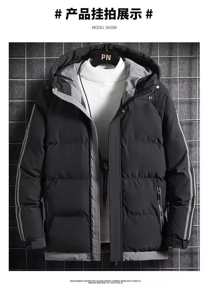 Abrigo acolchado de algodón para hombre, chaqueta de invierno nueva, gruesa y cálida con capucha, chaqueta acolchada de algodón de moda juvenil, chaqueta acolchada de algodón informal de marca de moda para hombre.