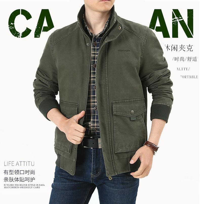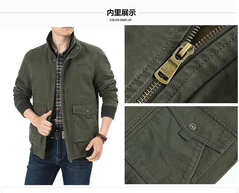 9803 nueva chaqueta casual de primavera y otoño para hombre, con cuello alto, multibolsillos, abrigo de papá de mediana edad, parte superior fina