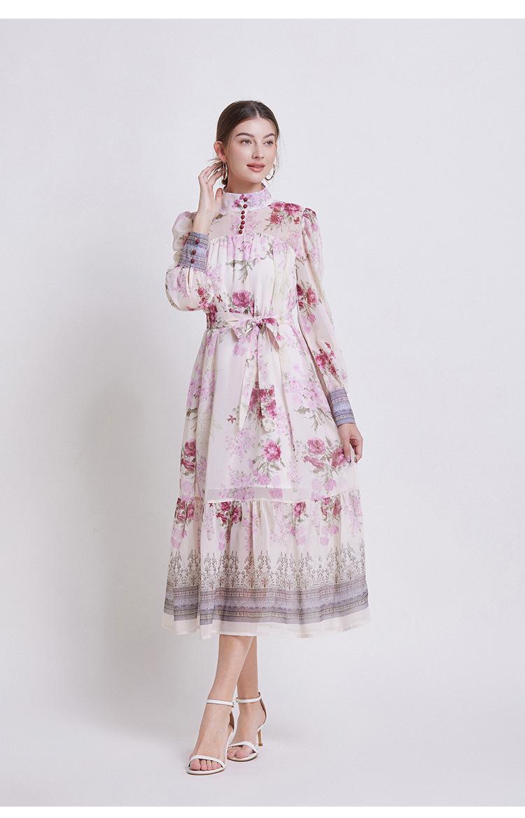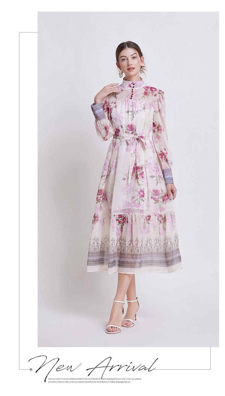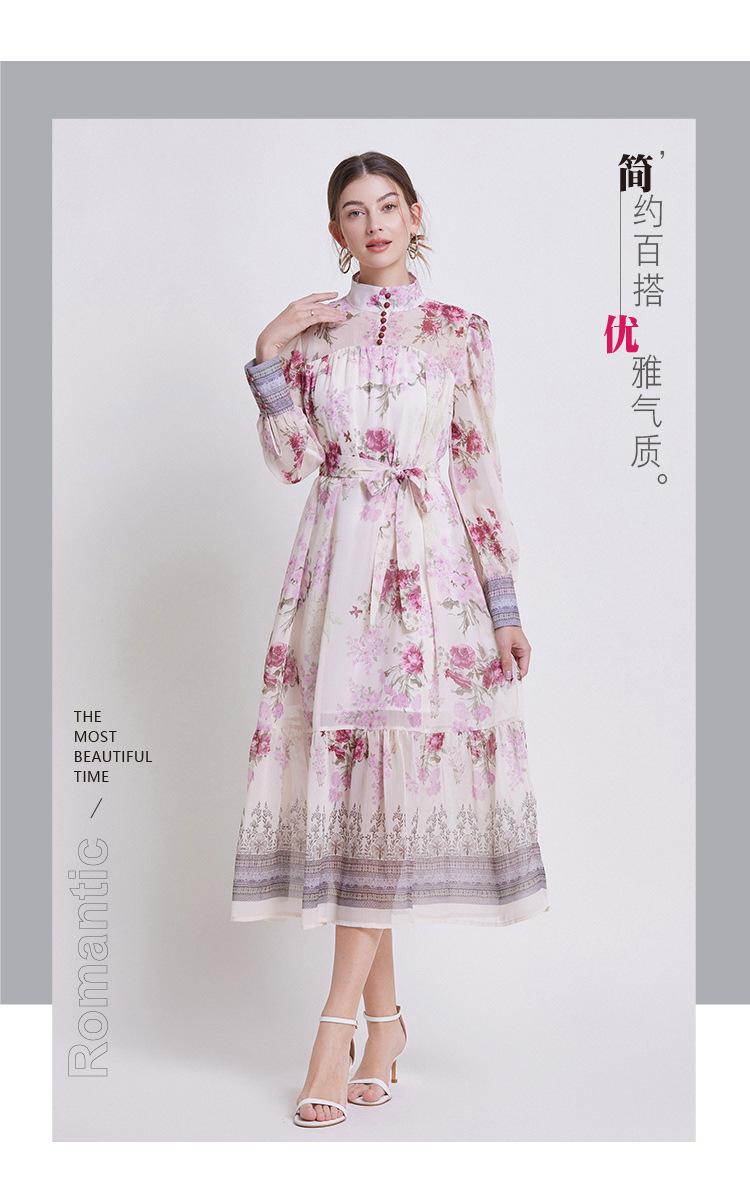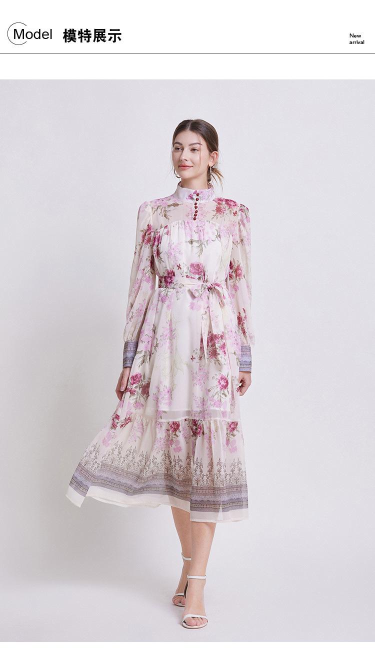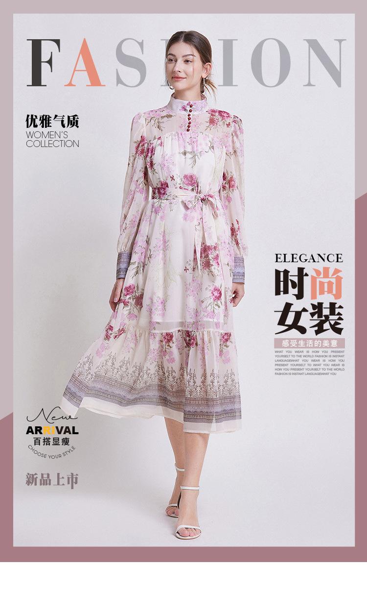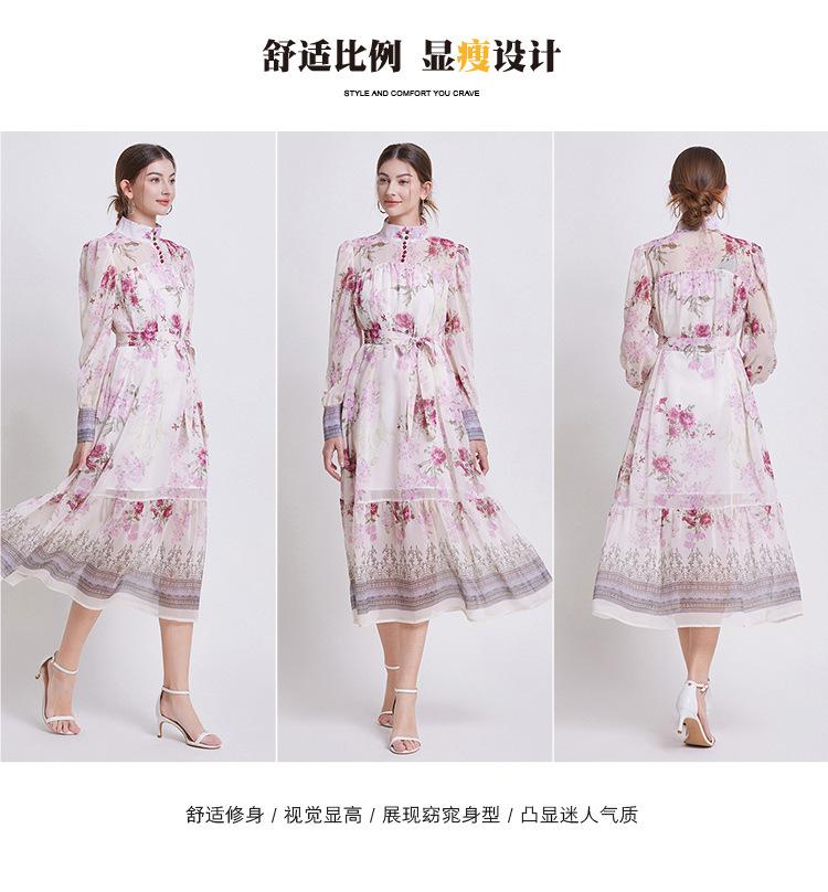 Compra Vestido de Gasa de Manga Larga con Estampado Elegante y a la Moda de Estilo Europeo y Americano para Primavera y Verano, con Cinturón Ajustable para una Silueta Delgada, Vestido Largo al por mayor en Joom.pro