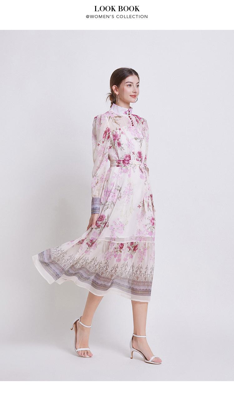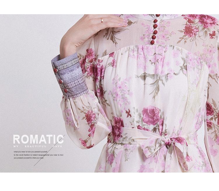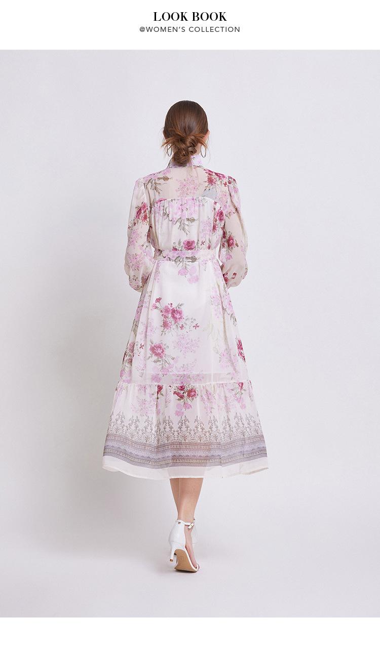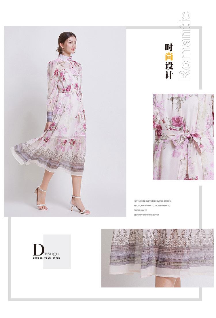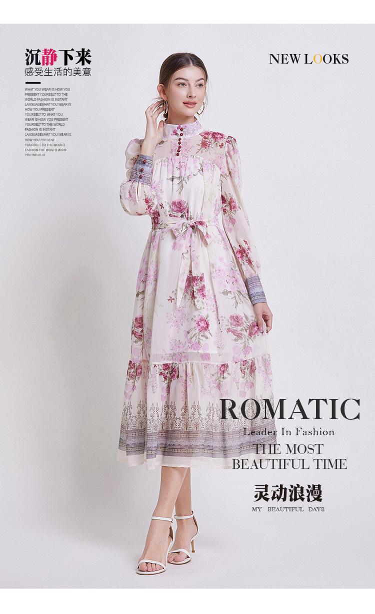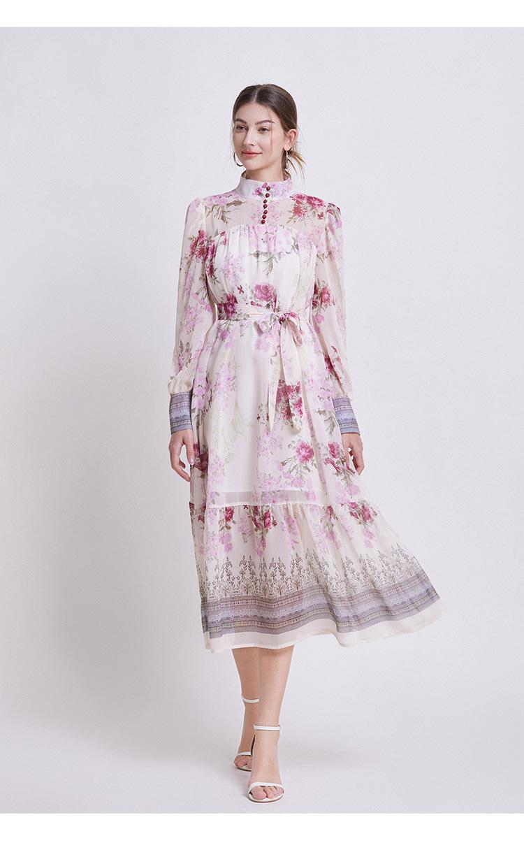 Compra Vestido de Gasa de Manga Larga con Estampado Elegante y a la Moda de Estilo Europeo y Americano para Primavera y Verano, con Cinturón Ajustable para una Silueta Delgada, Vestido Largo al por mayor en Joom.pro