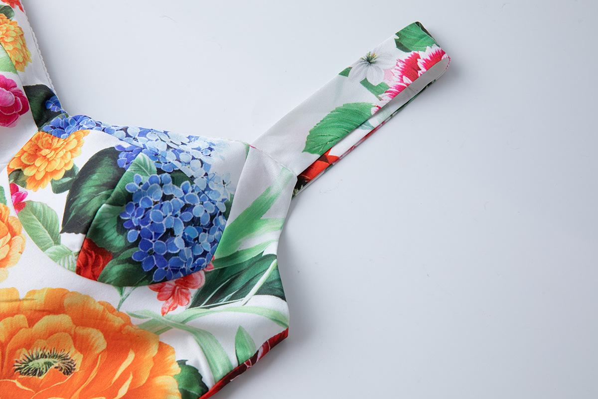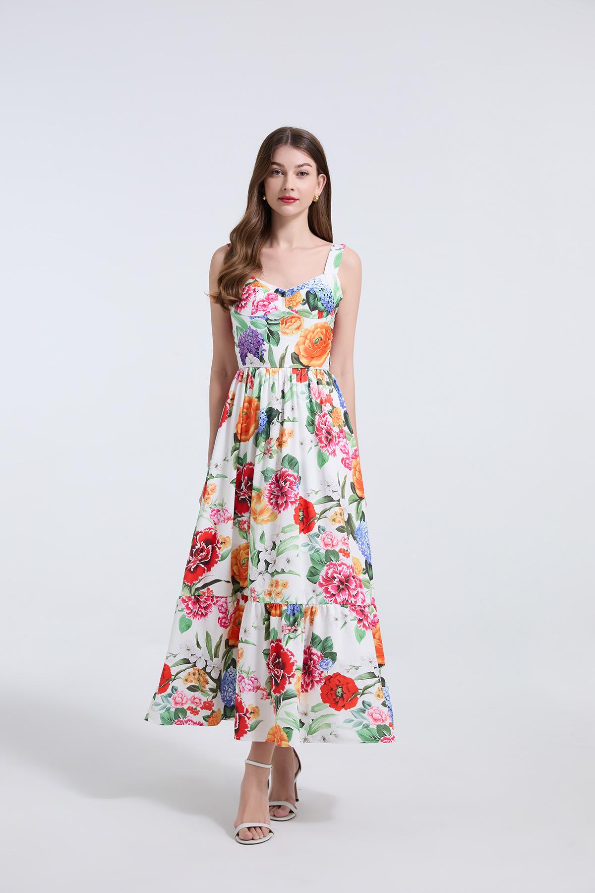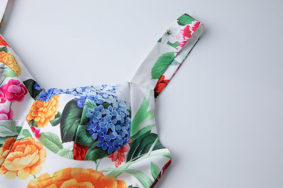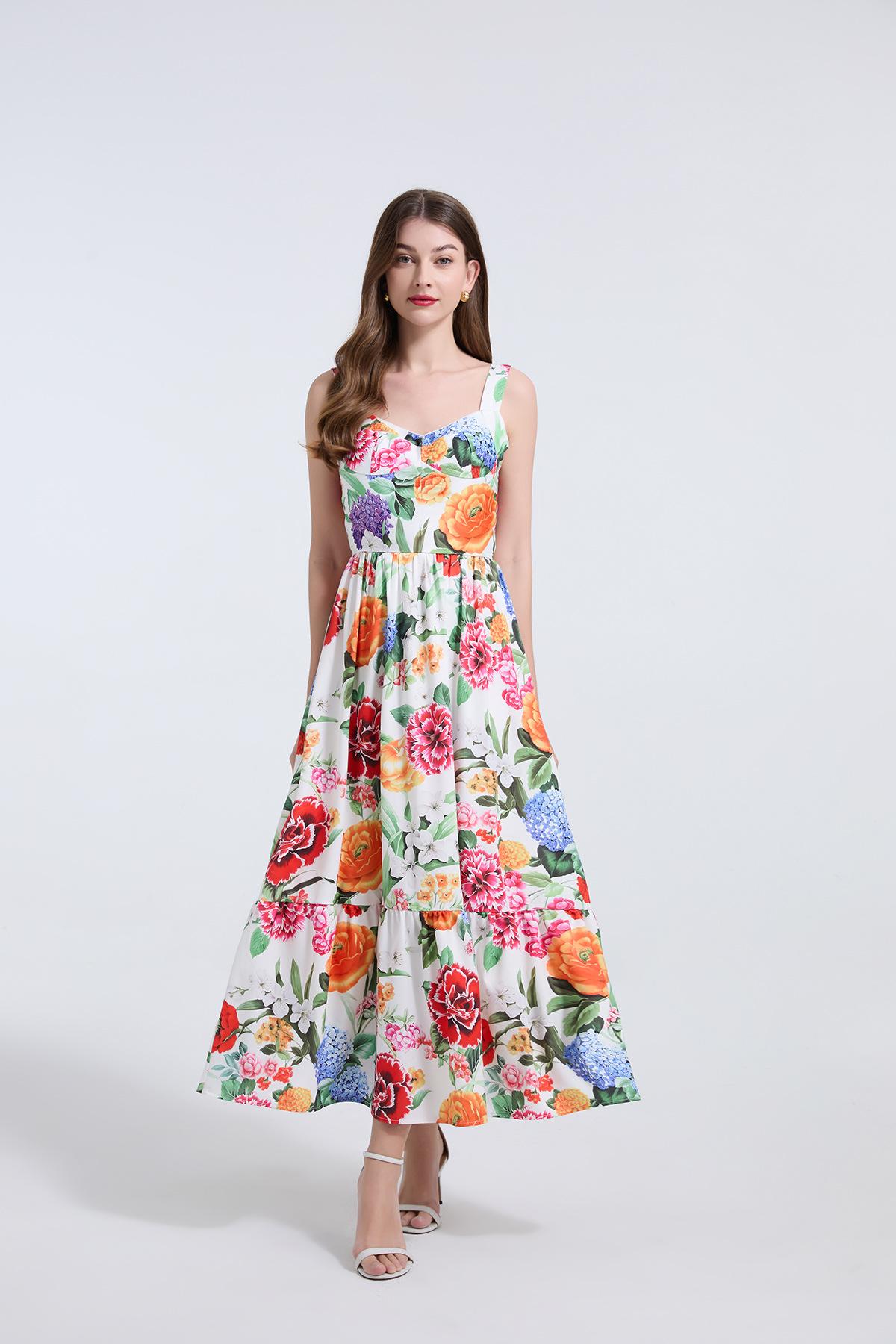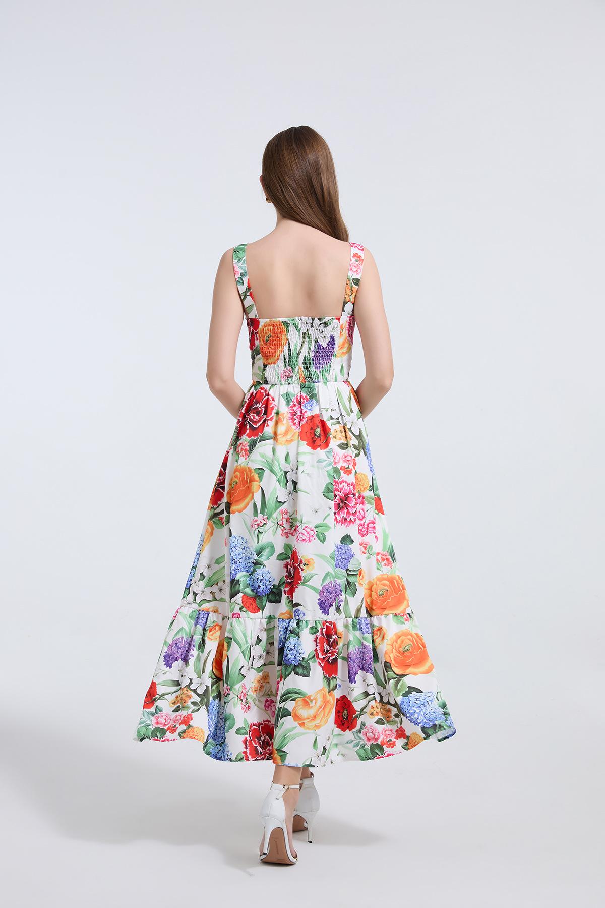 Vestido de Verano con Estampado de Posicionamiento, Sling de Posicionamiento, Corte Slim, Cintura Ajustada, Espalda con Goma, Falda Línea A