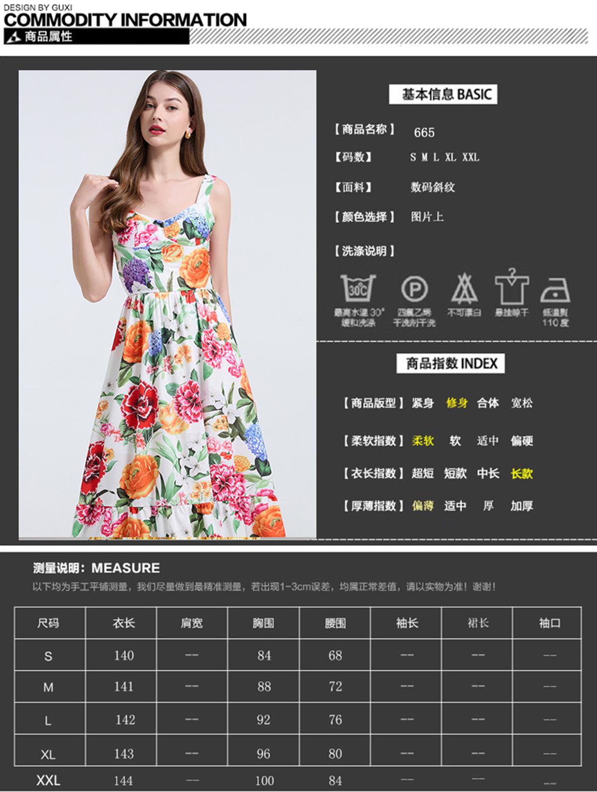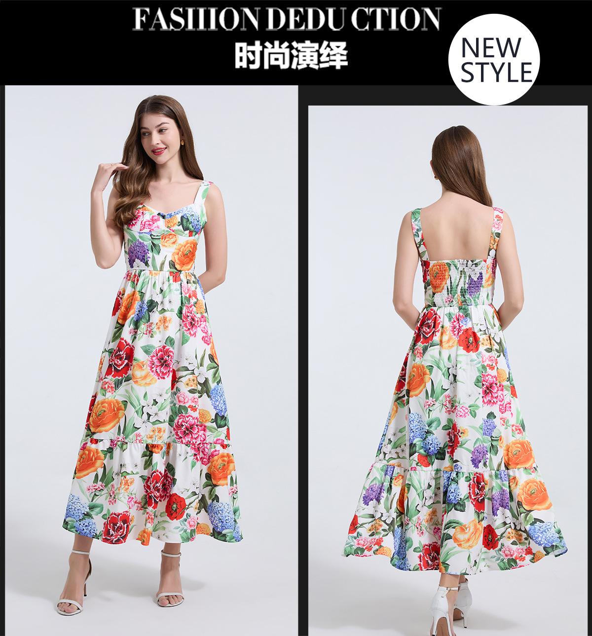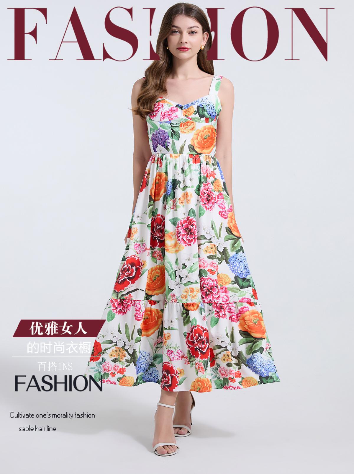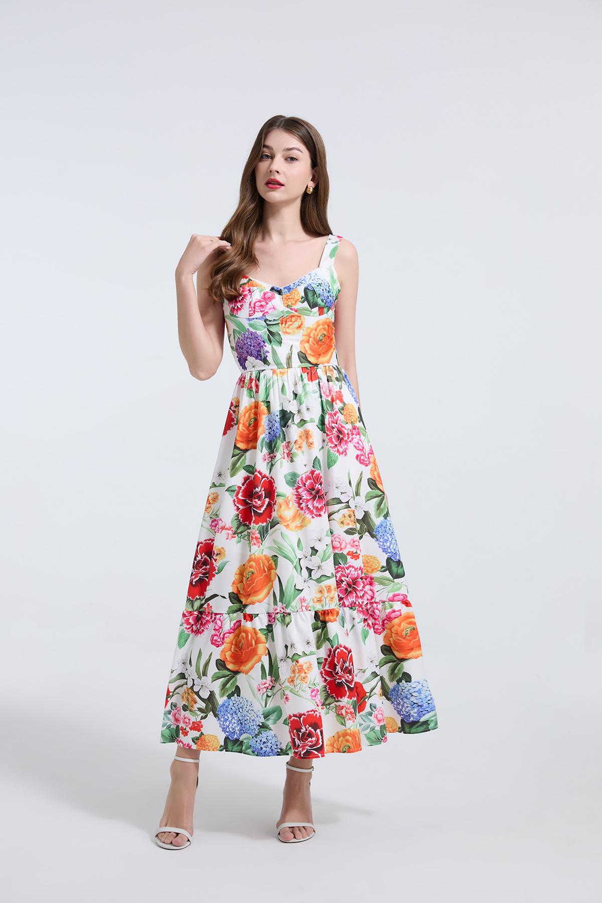 Vestido de Verano con Estampado de Posicionamiento, Sling de Posicionamiento, Corte Slim, Cintura Ajustada, Espalda con Goma, Falda Línea A