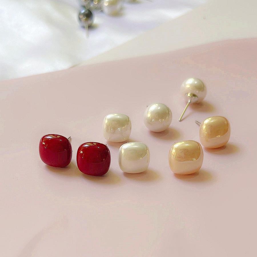 Aretes de Perlas de Imitación de Azúcar para Mujer Nuevas Explosiones Estilo Pequeño Aretes Cuadrados Lujo Ligero Alta Gama Elegante Elegante Joyería para la Oreja