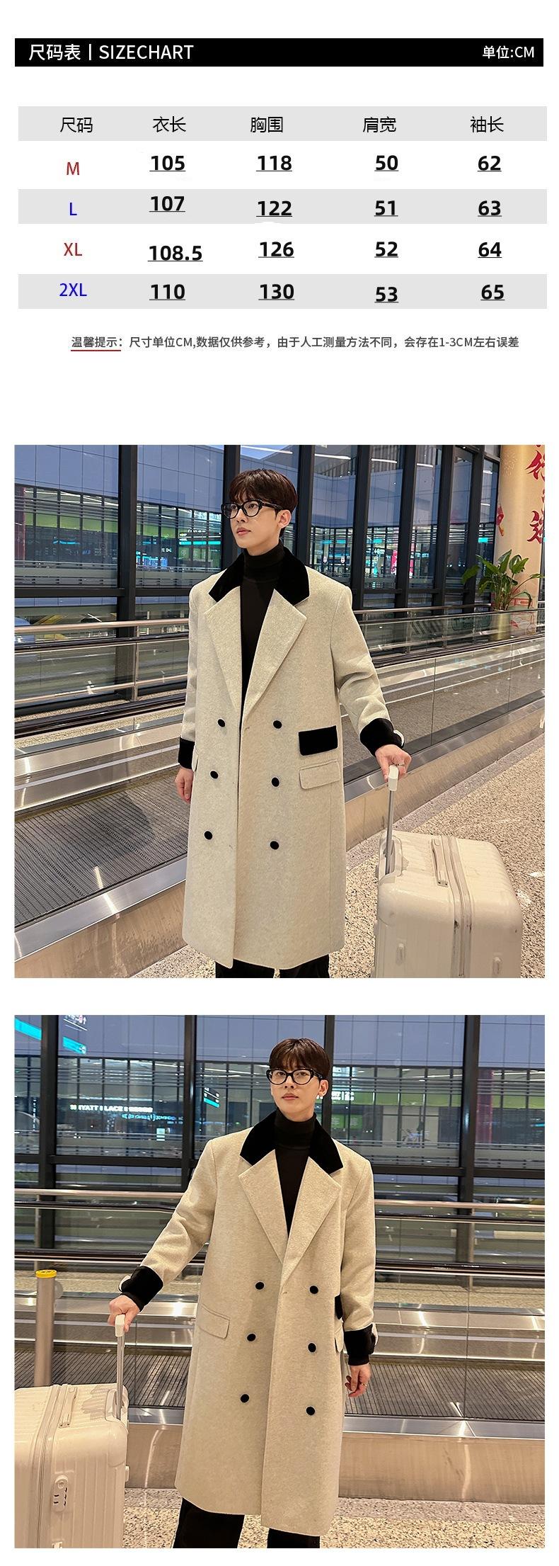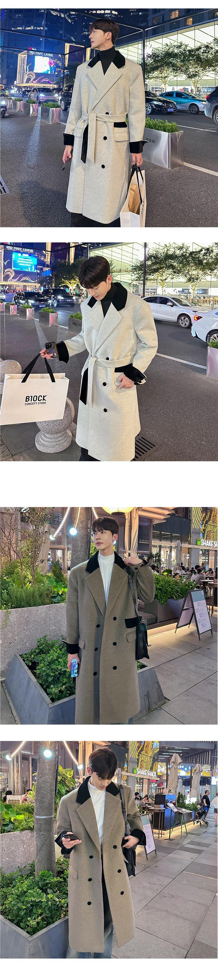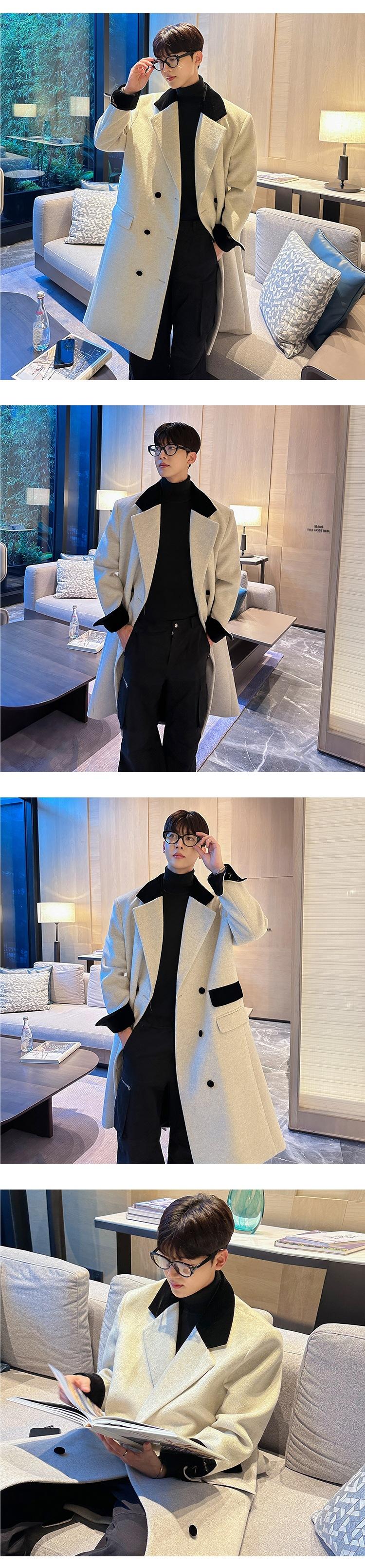 Abrigo de longitud media con diseño de costuras en contraste de color para hombre, estilo británico de otoño e invierno, de alta gama, cruzado, hasta la rodilla, gabardina de traje