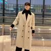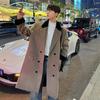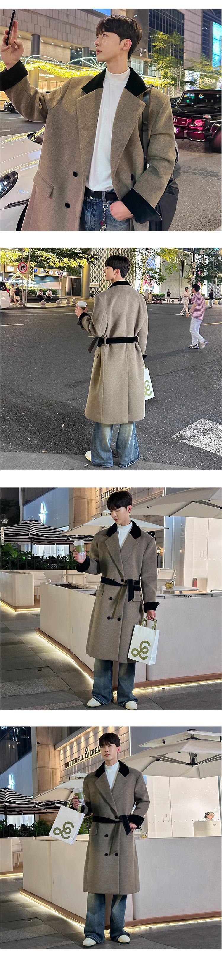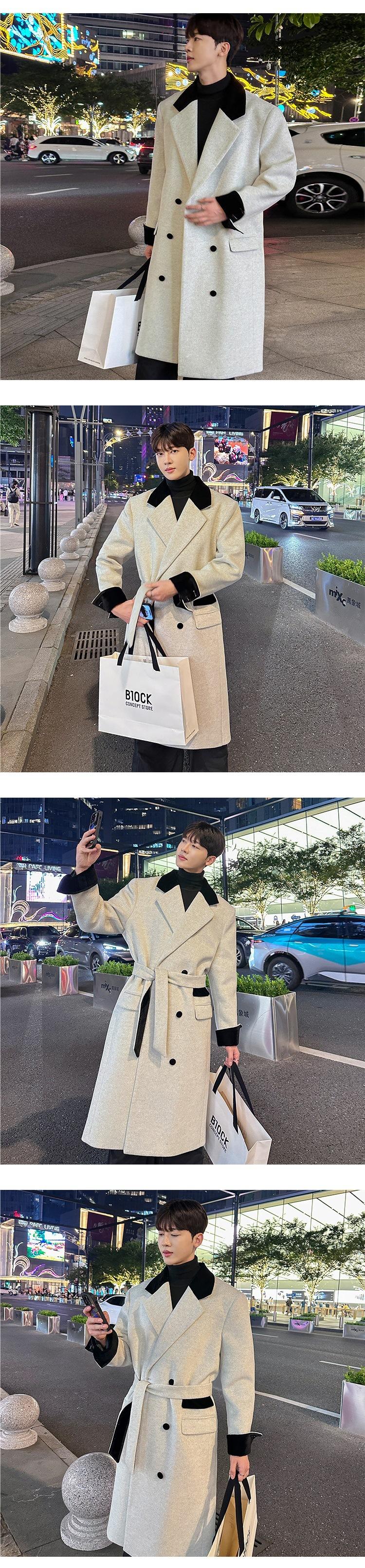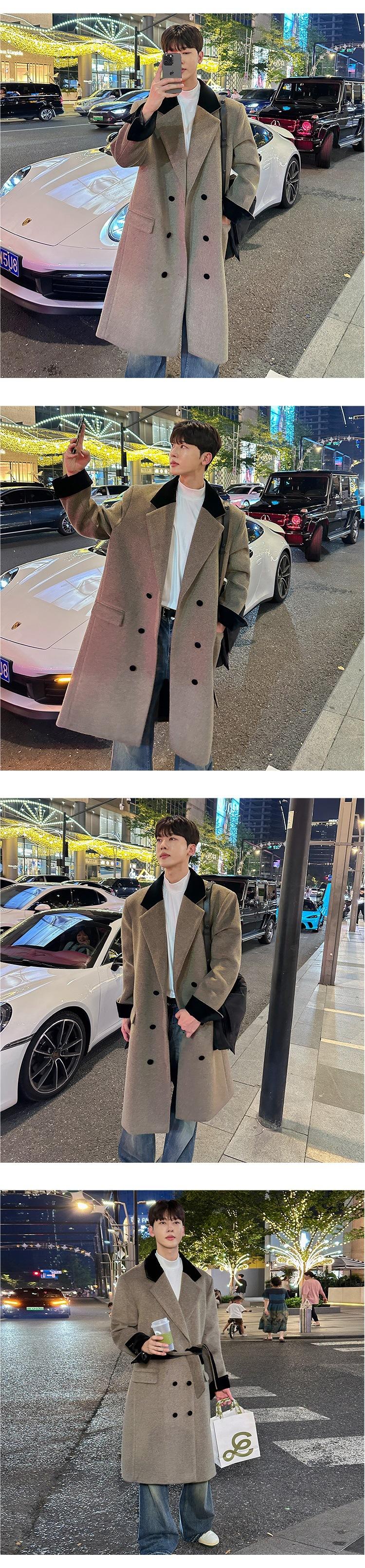 Abrigo de longitud media con diseño de costuras en contraste de color para hombre, estilo británico de otoño e invierno, de alta gama, cruzado, hasta la rodilla, gabardina de traje
