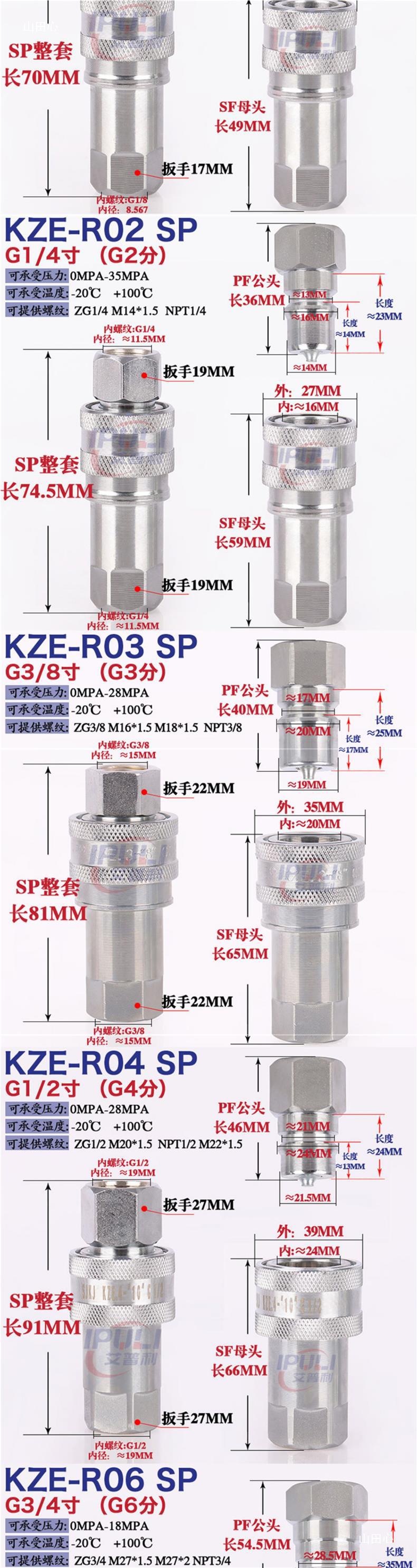 KZE1-04 G1 points [G1/8 double internal teeth, KZE2-06 G2 points [G1/4 double internal teeth, KZE3-08 G3 point...
