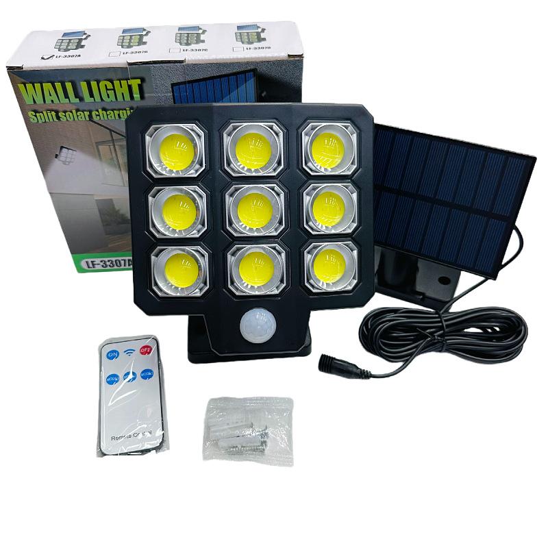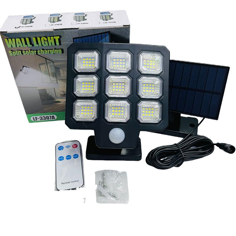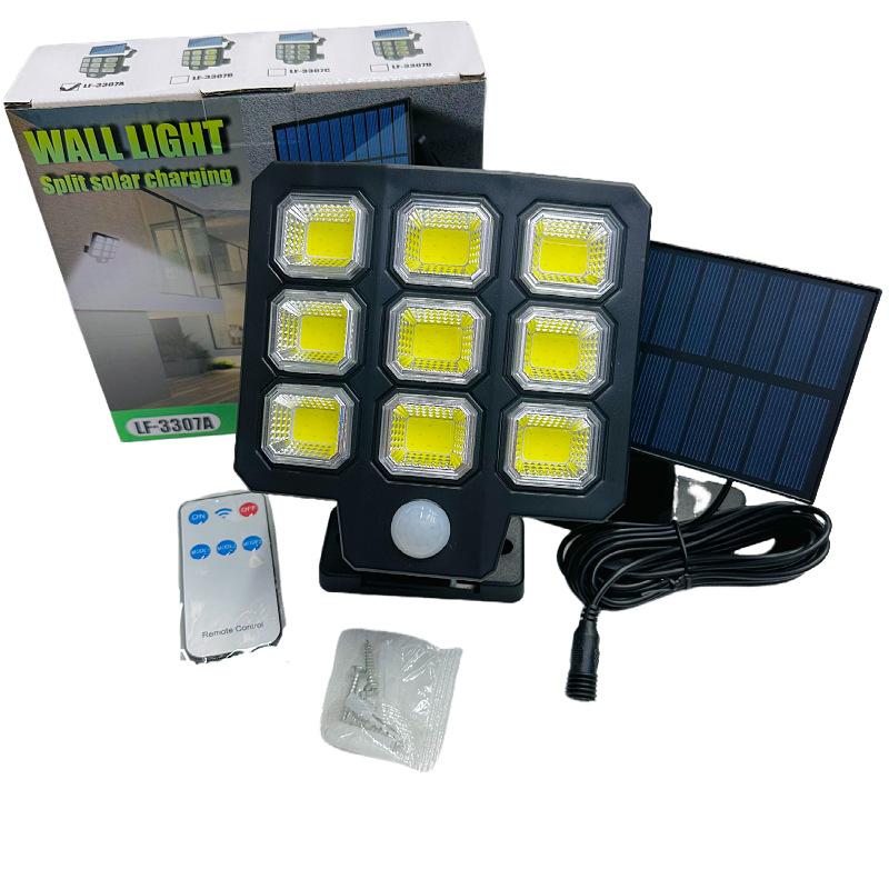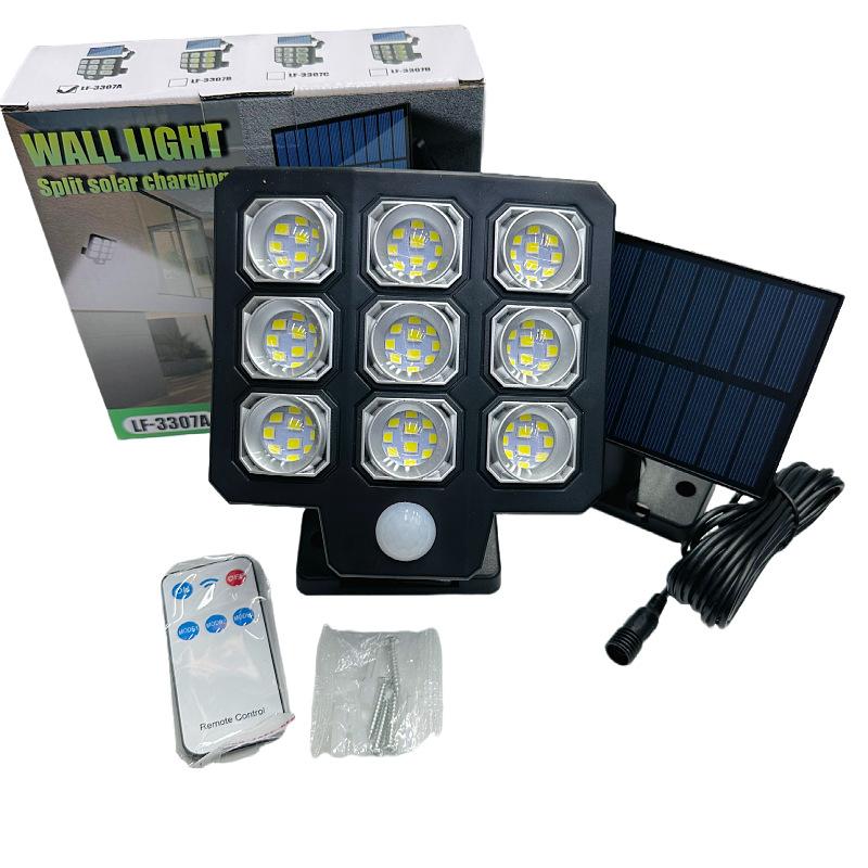 Lámpara solar de jardín de un solo cabezal, lámpara de pared con detección de movimiento y control remoto, lámpara de garaje, iluminación exterior multifuncional.