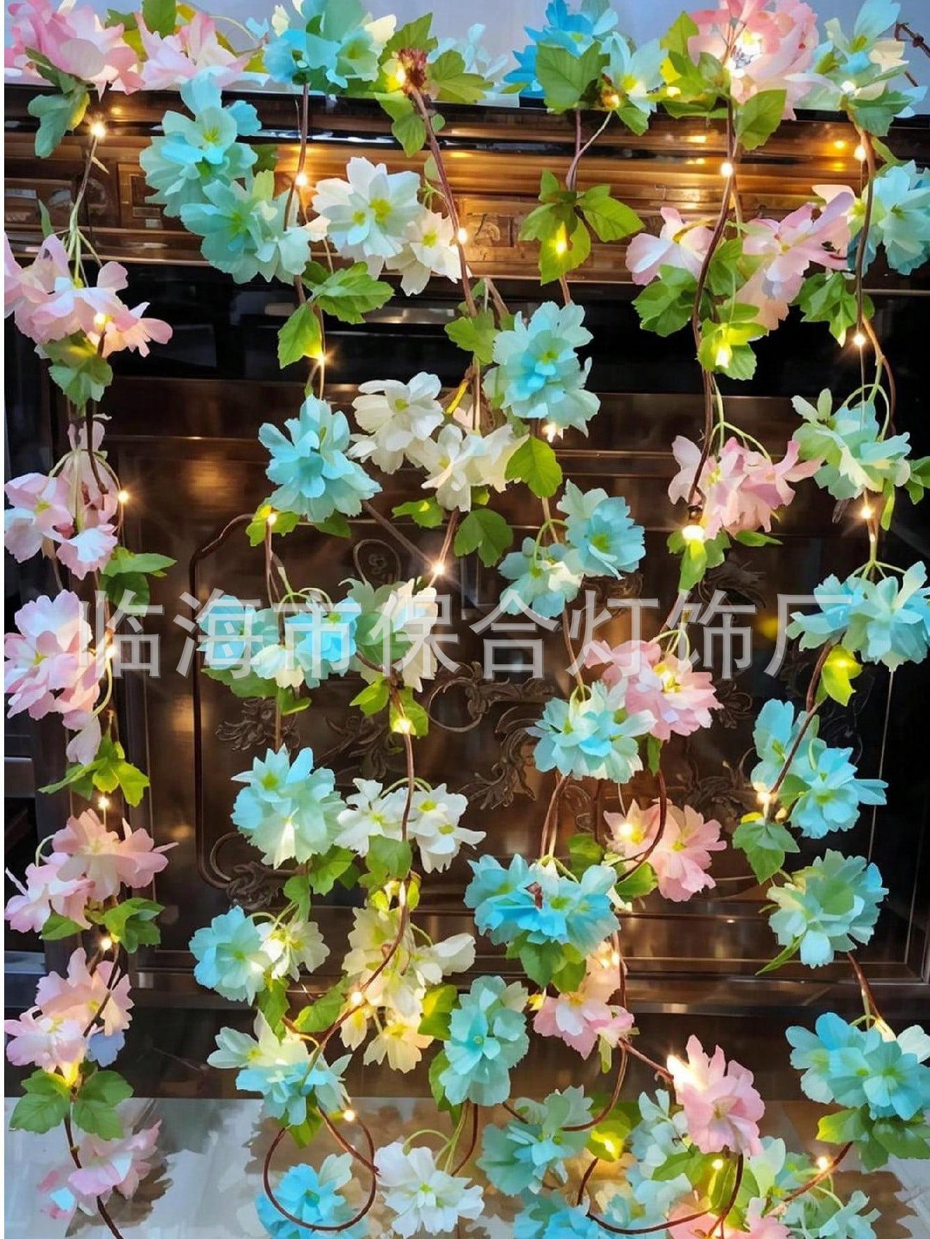 Holiday decor led pink cherry blossom rattan string lights wedding birthday decoration holiday ornaments with lights
