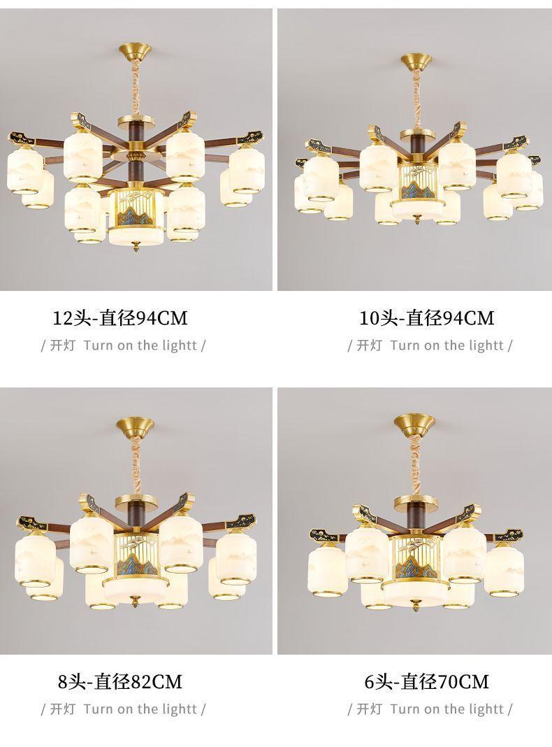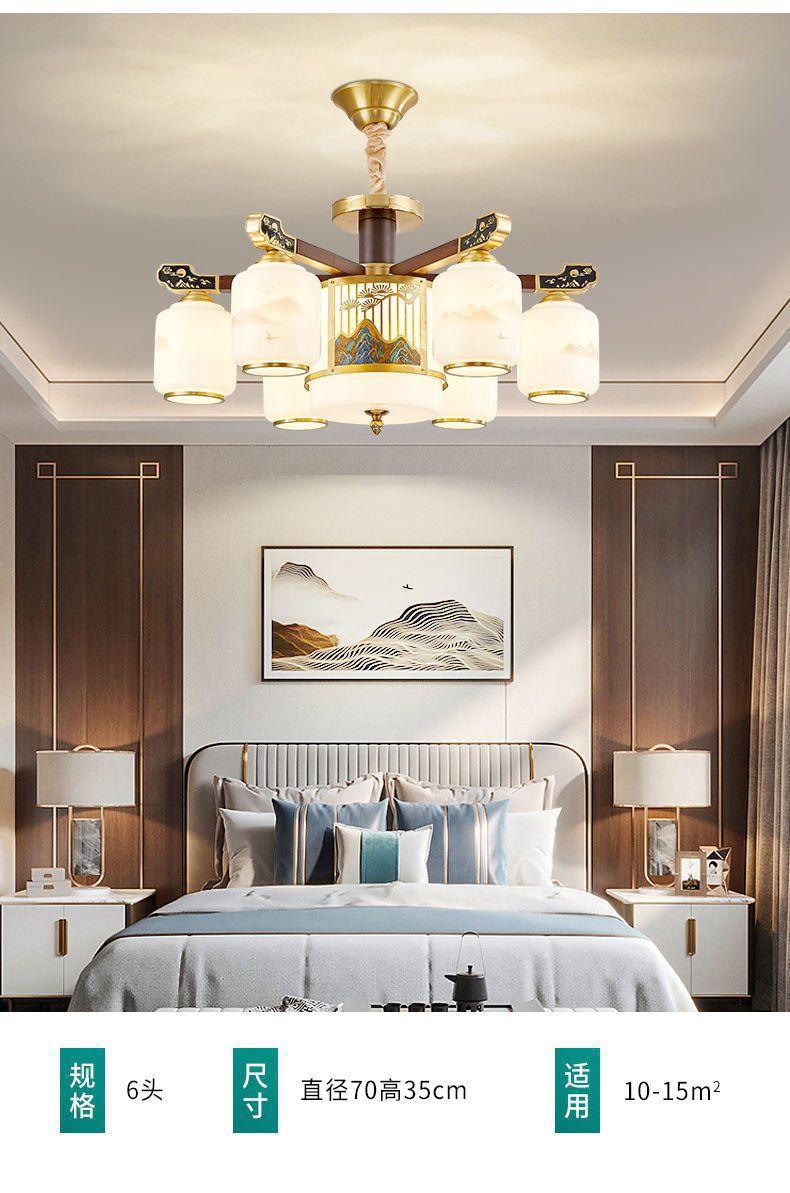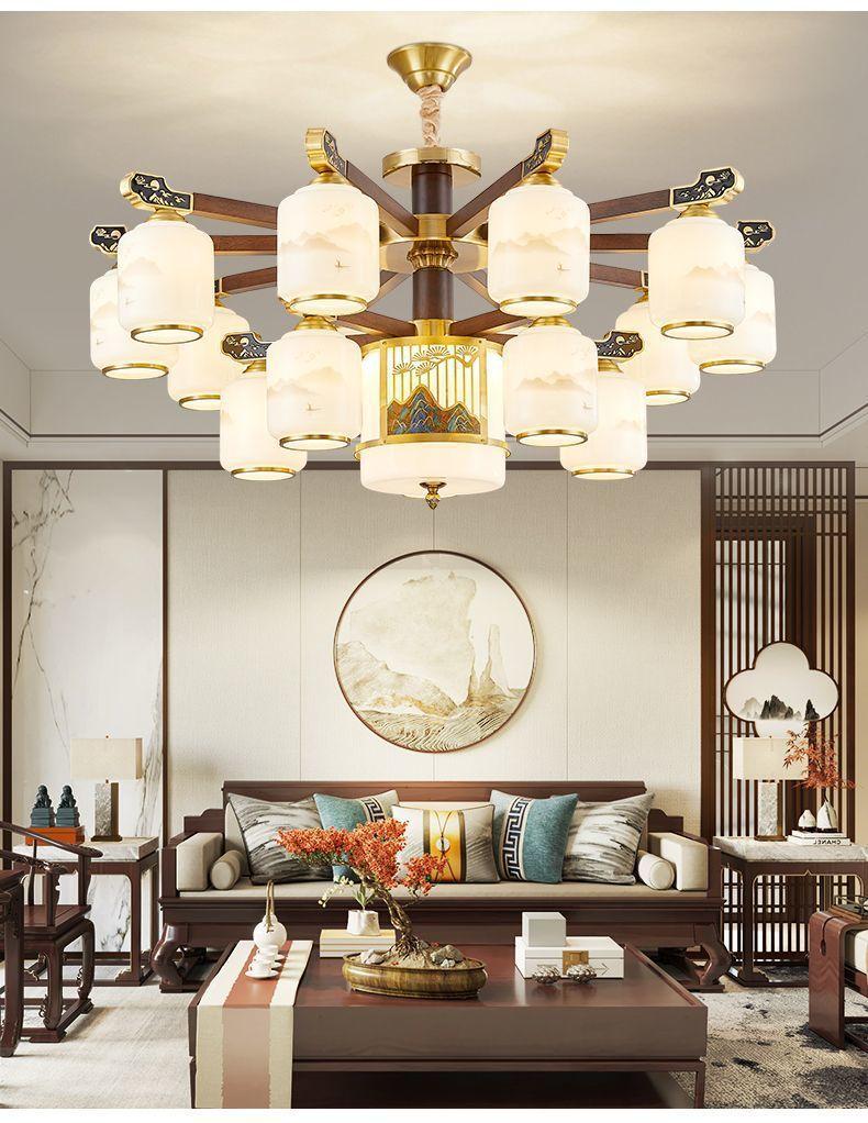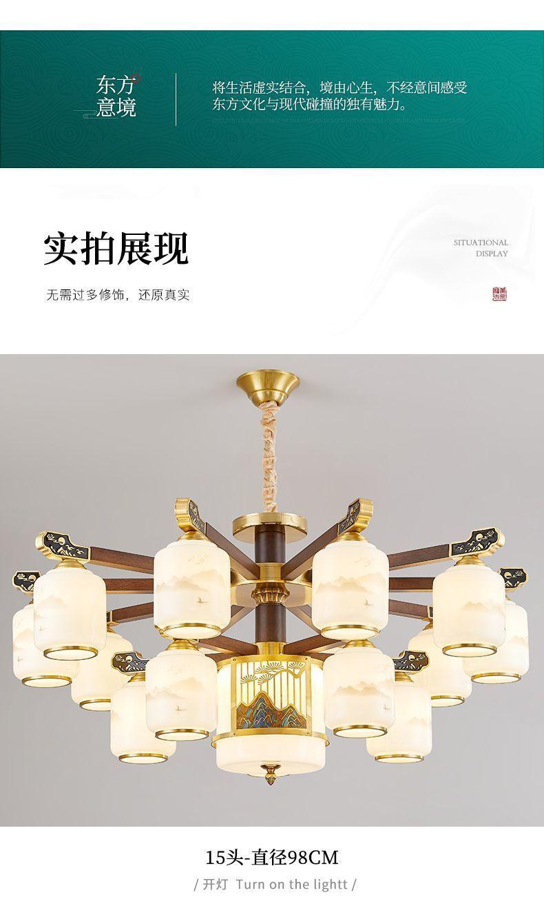 Nueva Lámpara de Araña de Estilo Chino, Lámpara de Sala de Estar de Madera Maciza de Cobre de Alta Gama, Lámpara de Dormitorio Estudio Simple y Elegante, Lámpara de Araña para Comedor