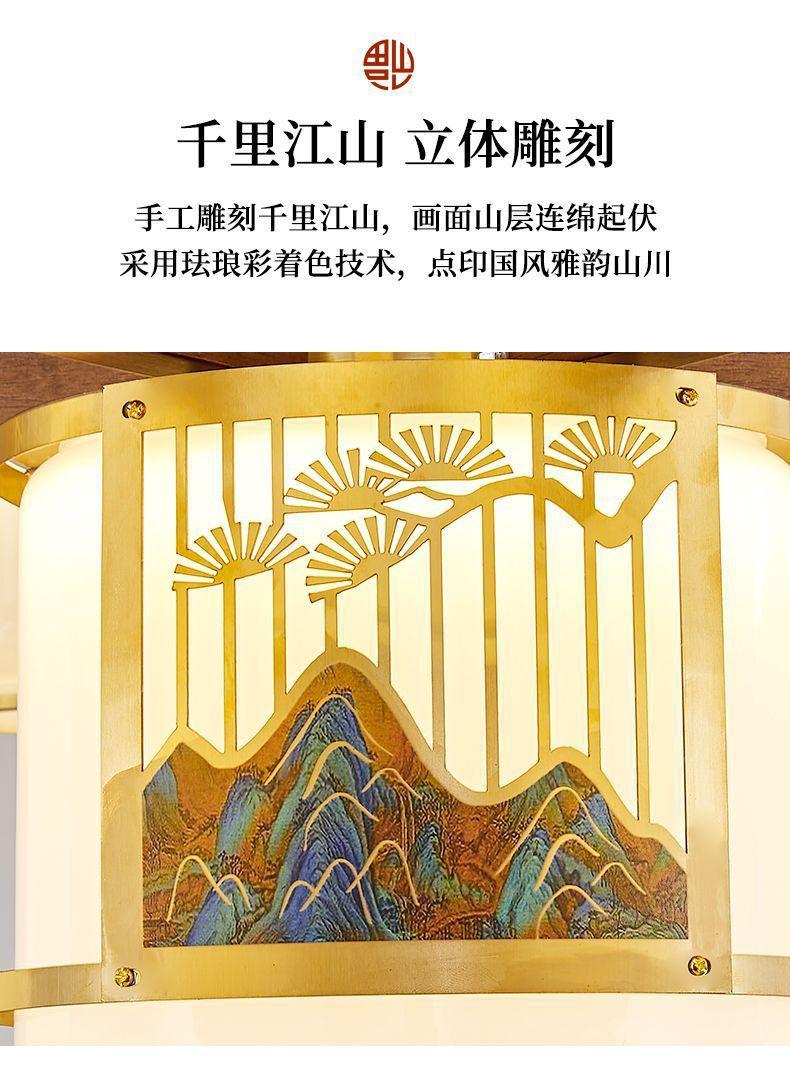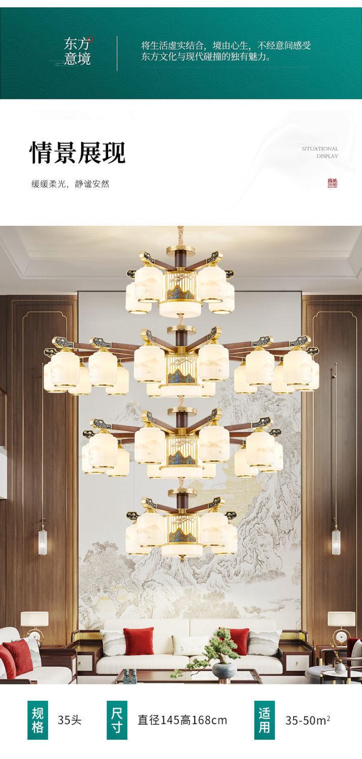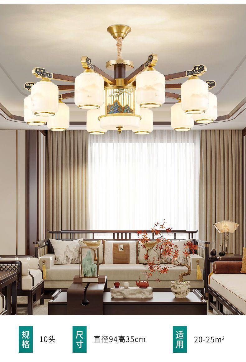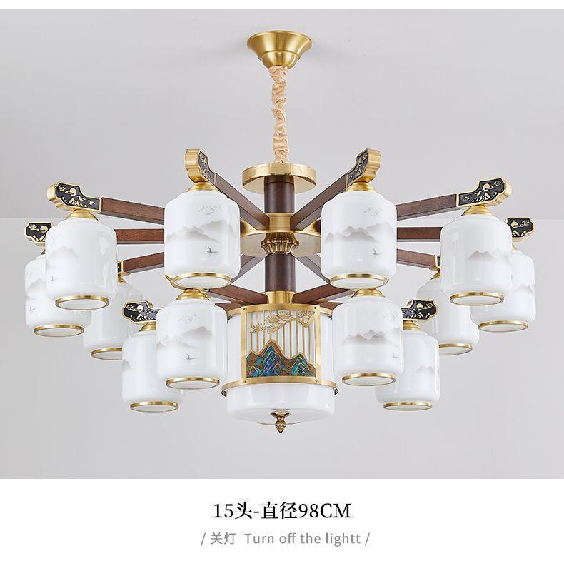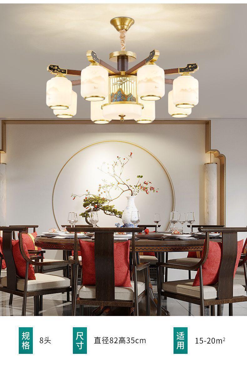 Nueva Lámpara de Araña de Estilo Chino, Lámpara de Sala de Estar de Madera Maciza de Cobre de Alta Gama, Lámpara de Dormitorio Estudio Simple y Elegante, Lámpara de Araña para Comedor