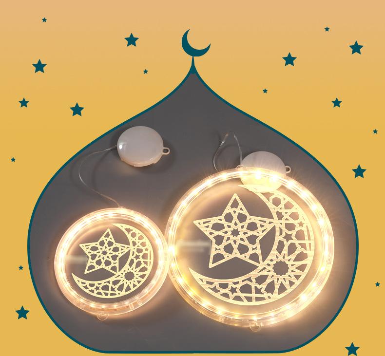 Estrellas luminosas y luces LED colgantes de castillo lunar, ambiente festivo, decoración de ventana interior, adornos decorativos, transfronterizo