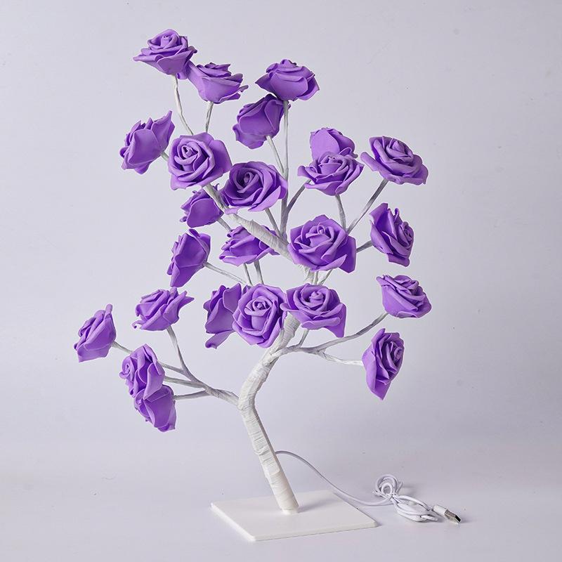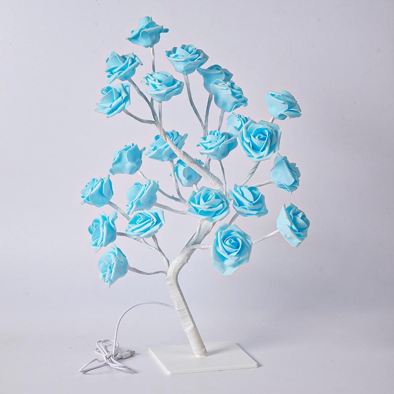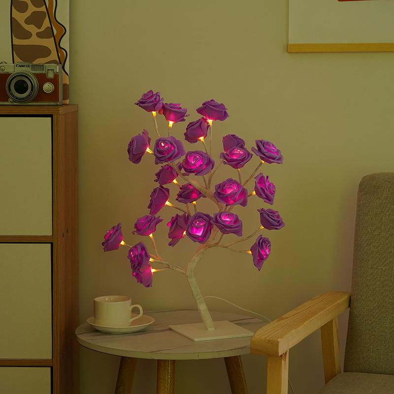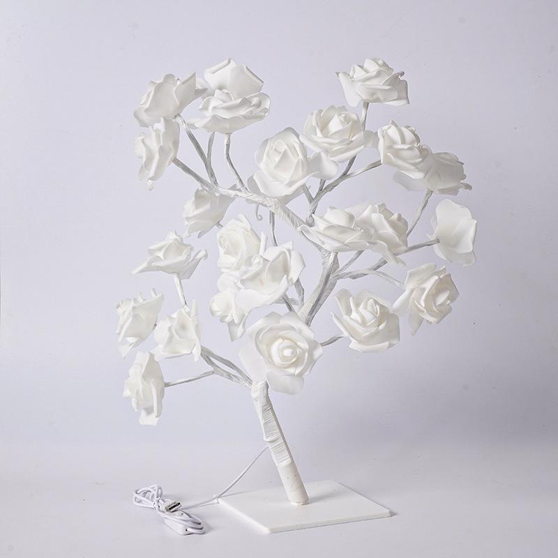 Nueva luz nocturna decorativa de ambiente interior desmontable transfronteriza, luz de árbol de rosas LED de simulación con interruptor USB personalizado