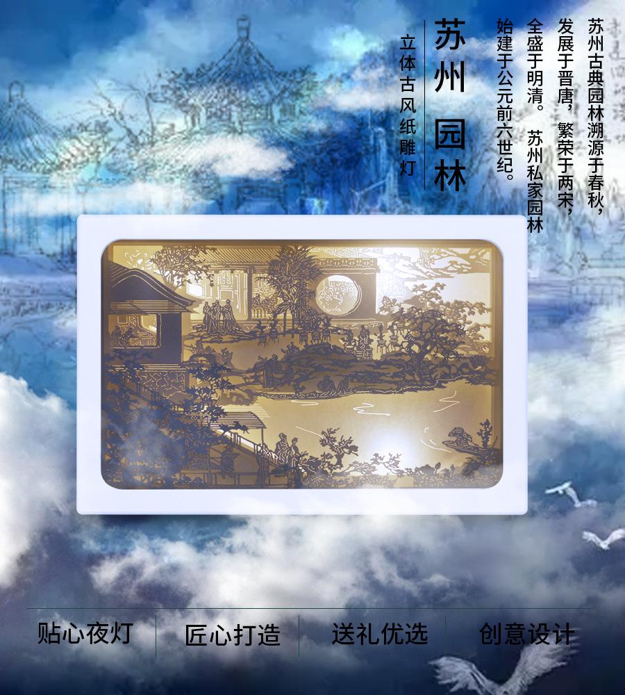 Compra Lámpara de papel calado creativo cultural Dibujo estilo antiguo chino DIY Jardín de Suzhou hecho a mano pintura de paisaje creativa Lámpara de noche lámpara de noche al por mayor en Joom.pro