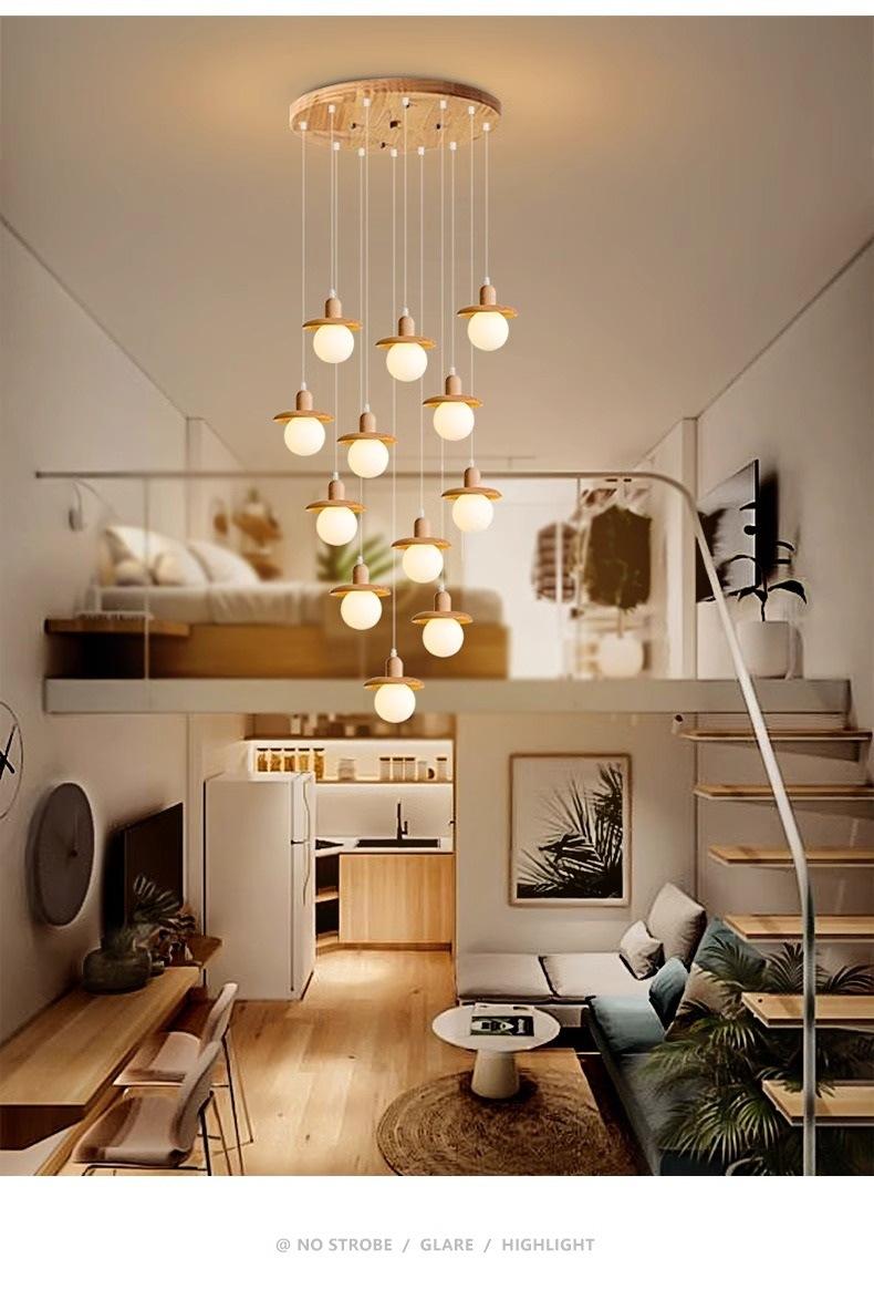 Lámpara de araña personalizada, nueva, de gran altura, estilo nórdico, escalera, villa, troncos, selección creativa, sala de exposiciones vacía, escalera, lámpara de araña, selección