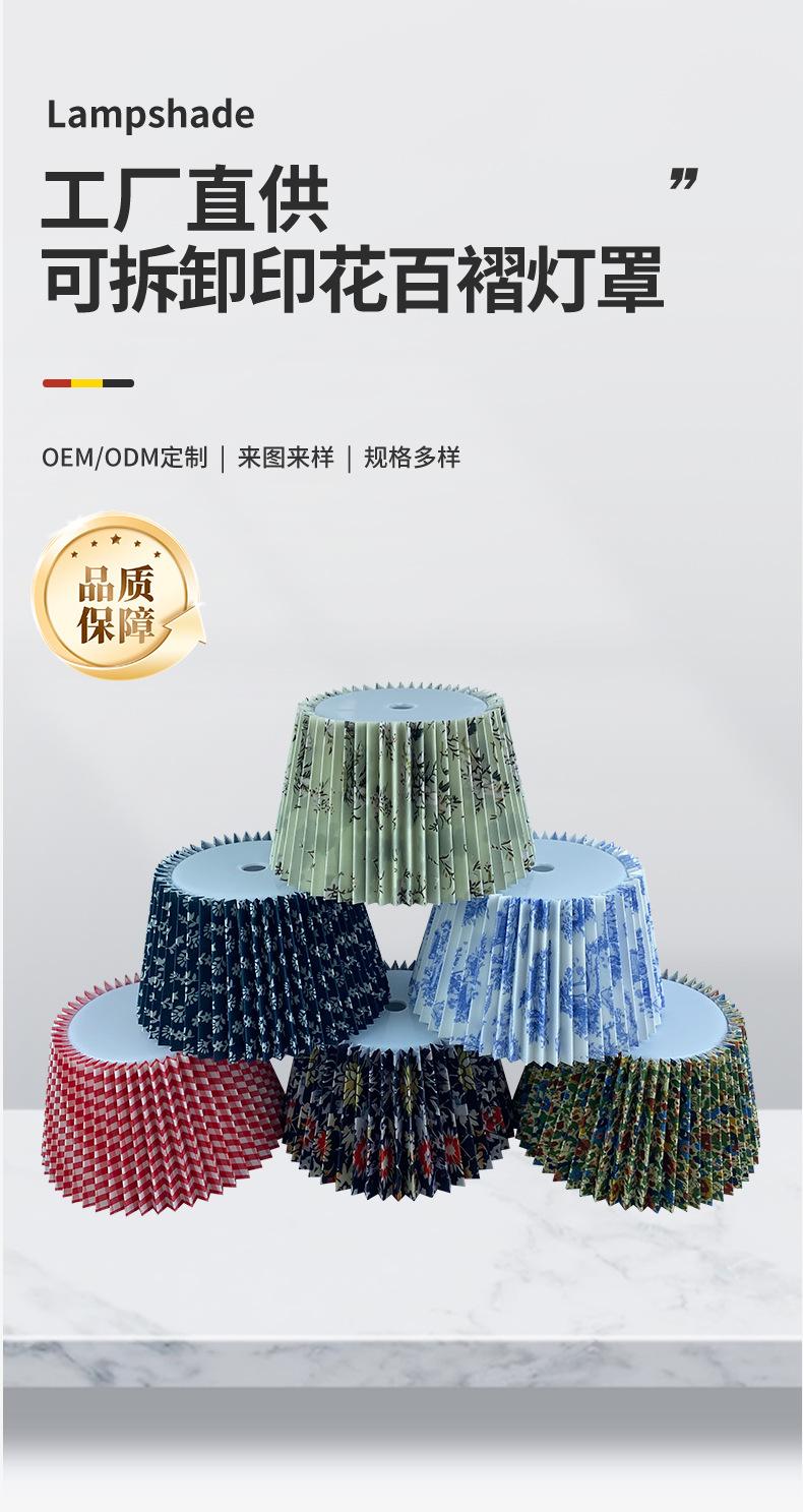 Nueva pantalla plisada estampada para lámpara de pie, lámpara de mesa, pantalla plegable vintage francesa plisada de tela colorida.