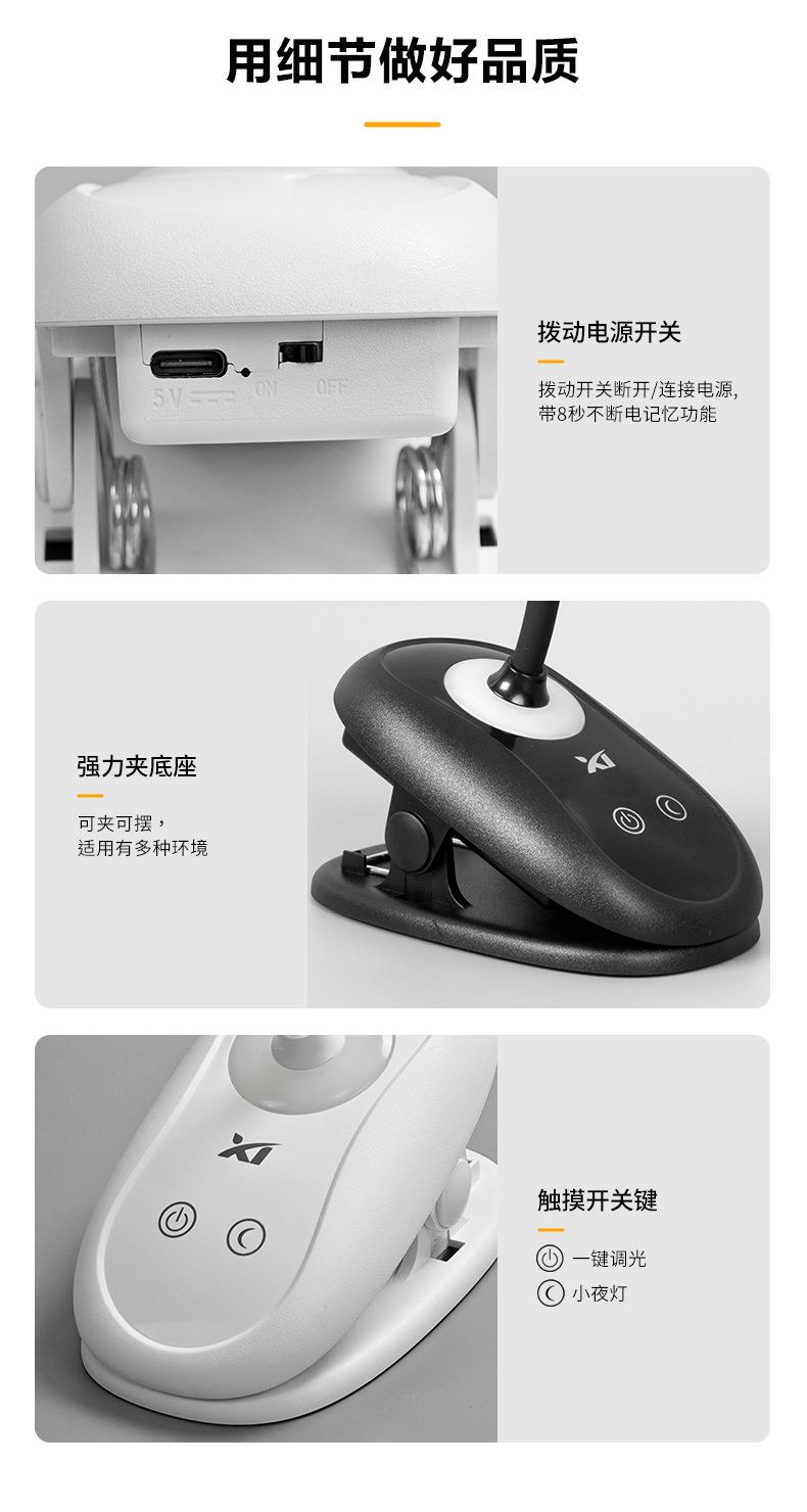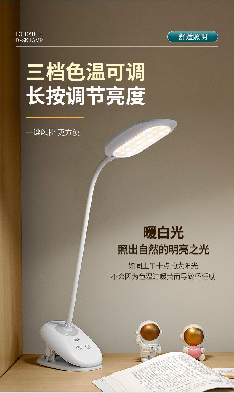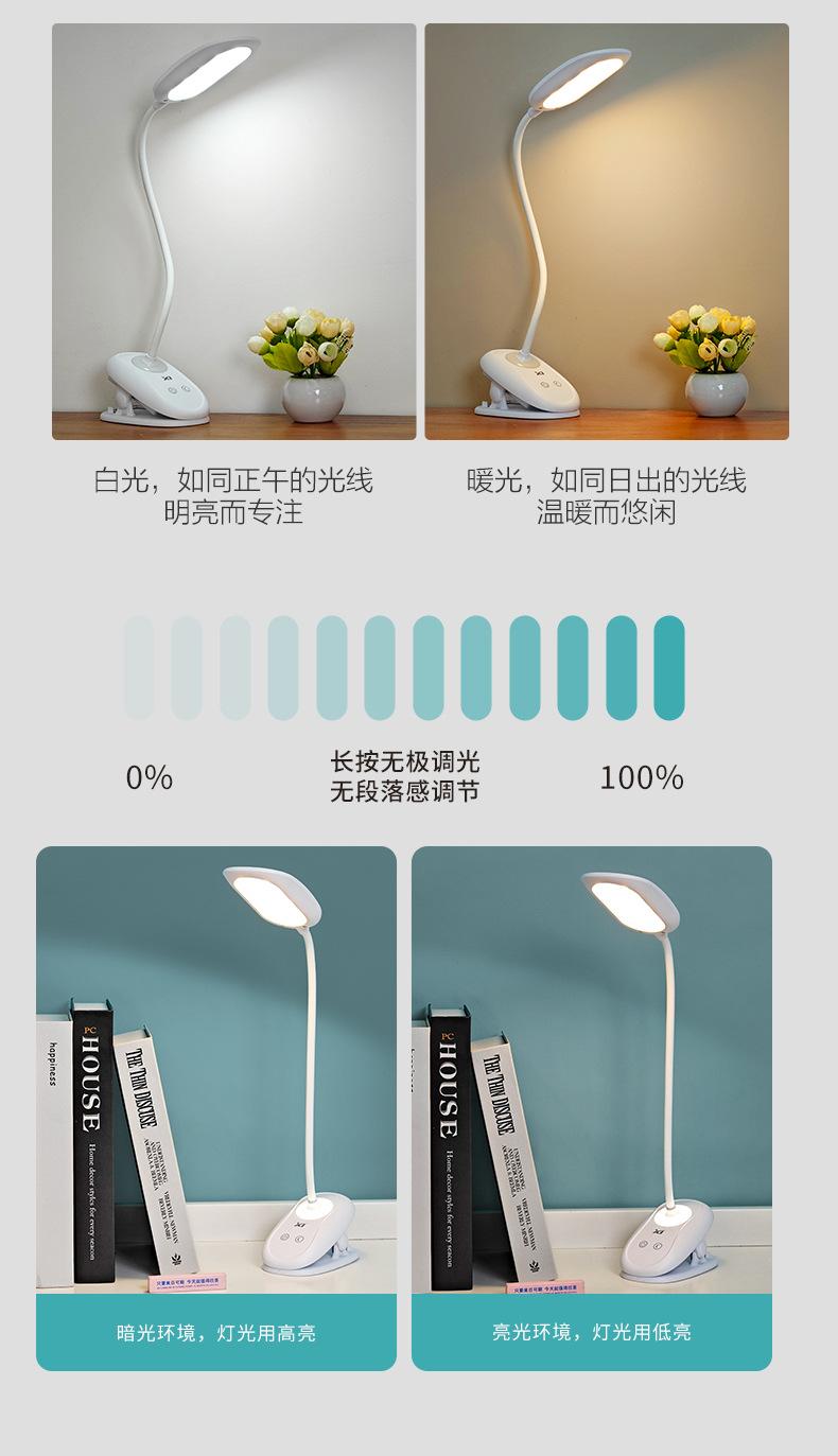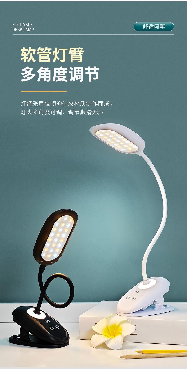 Lámpara de Mesa con Clip Protector de Ojos Específica para Estudio Luz Nocturna Dormitorio Carga Led Lámpara de Lectura de Cabecera Regalo para Estudiante Transfronterizo