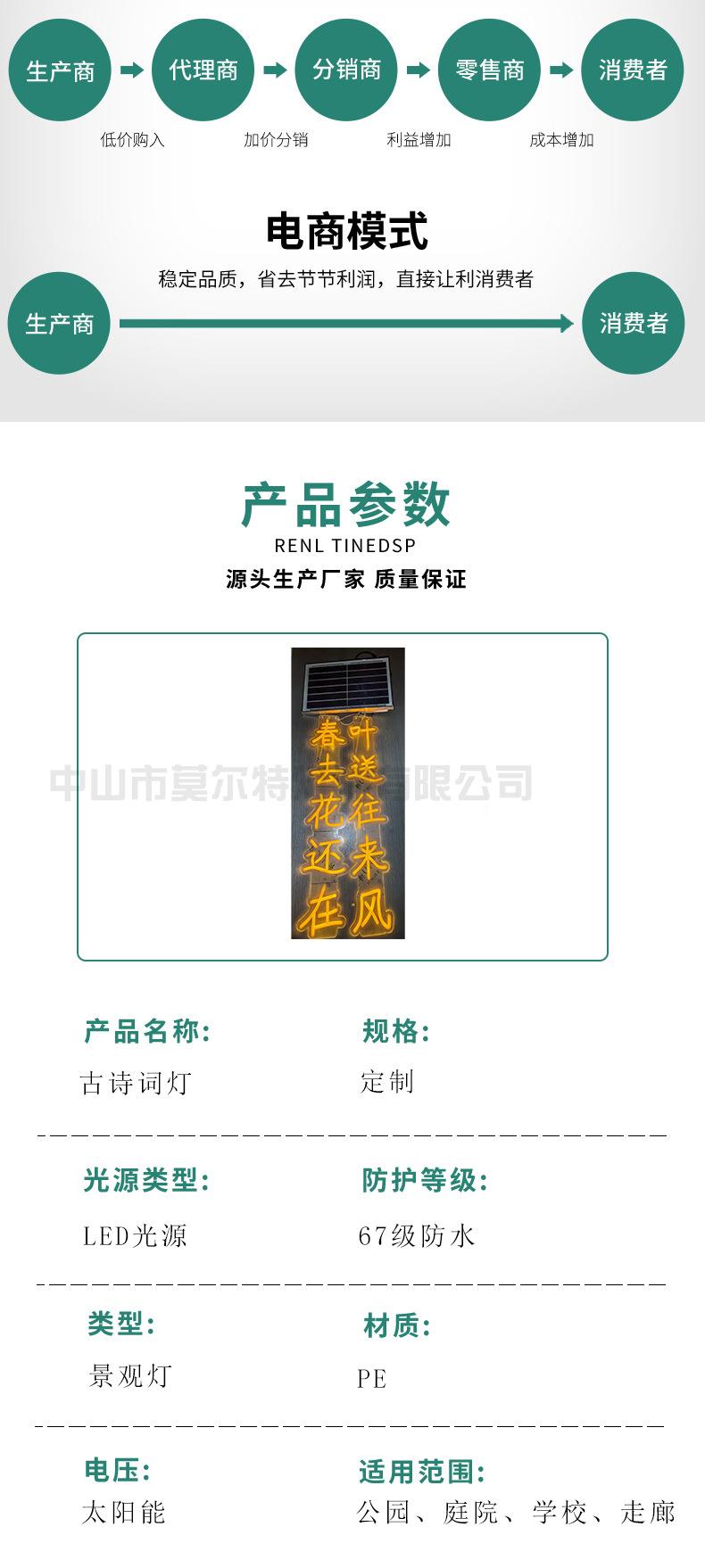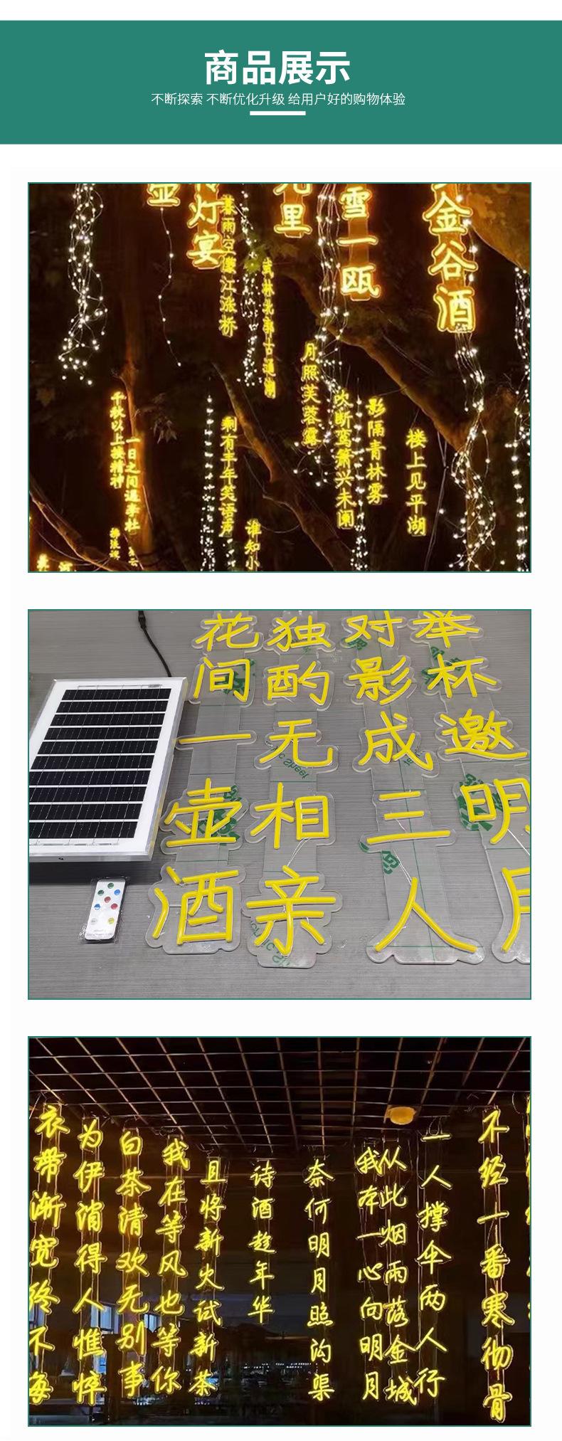Luz Solar para Exterior Poesía Antigua Luz de Neón Luminosa Guirnalda de Luces con Banderines de Caracteres Parque de Área Escénica Calle Colgante Árbol Luz de Poesía
