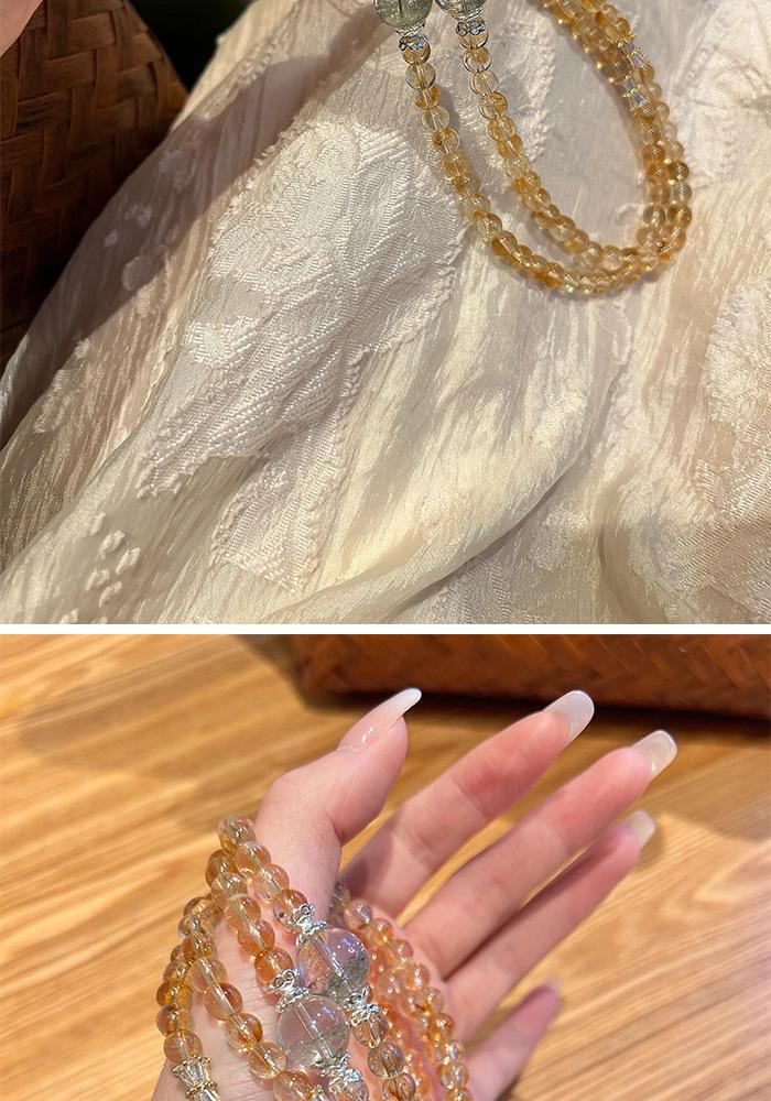 Pulsera de Citrino Brasileño Natural para Mujer Doble Círculo Súper Flash Amarillo Acer Verde Fantasma Rico Libre Multi-Círculo