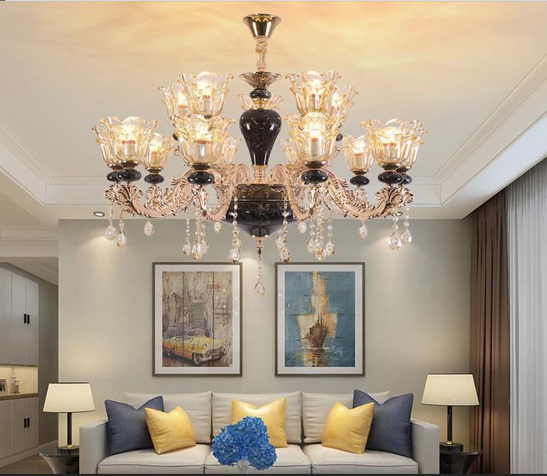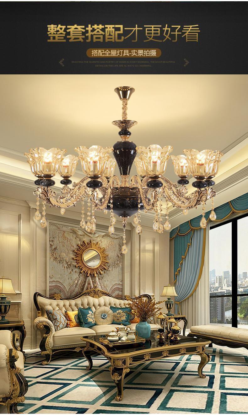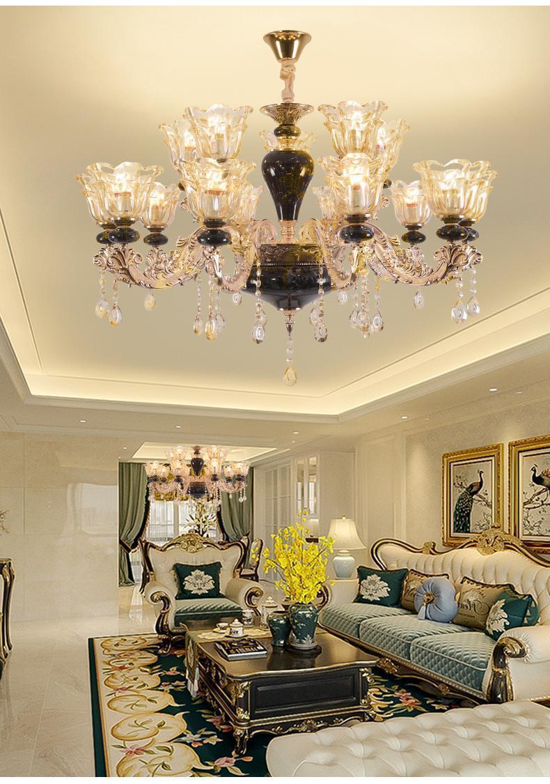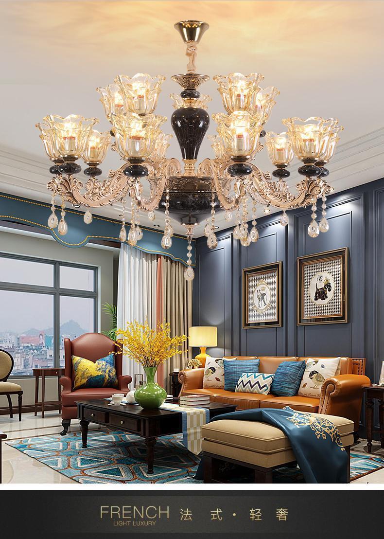 Candelabro Europeo Lámpara de Lujo para Sala de Estar 2024 Nuevo Estilo Atmosférico Hogar Lámpara de Cerámica Azul Francés Lámpara de Cristal para Dormitorio