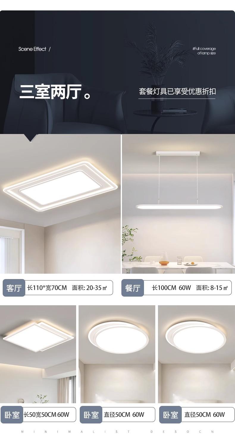 Lámpara principal atmosférica para sala de estar, comedor, dormitorio, moderna y sencilla lámpara de techo nórdica LED, paquete de lámpara para toda la casa, combinación
