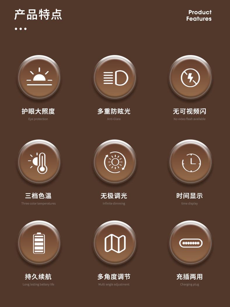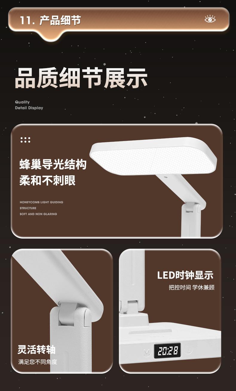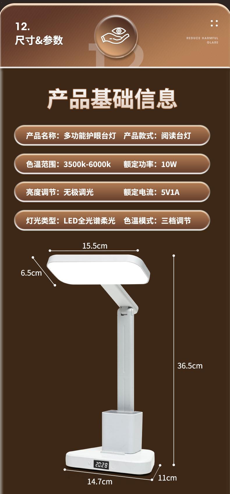 Double-ended pen holder-clock model, three-color temperature stepless dimming + cord