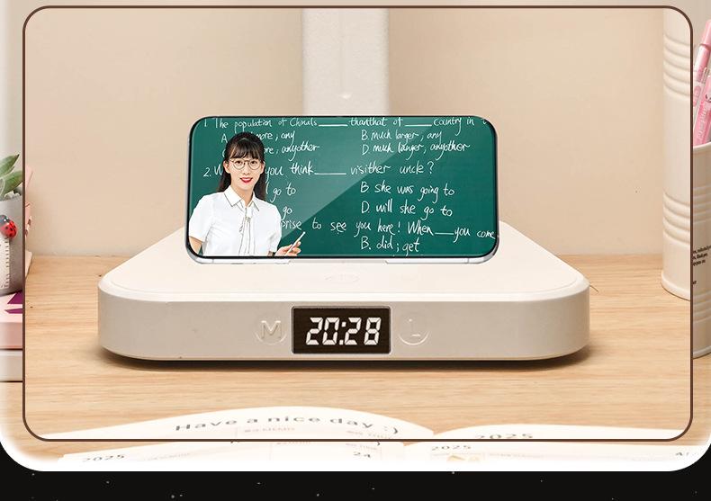 Lámpara de Escritorio Multifuncional para Dormitorio de Estudiantes, Aprendizaje y Lectura, Recargable, con Pantalla de Reloj, Recargable y Conectable, con Portalápices