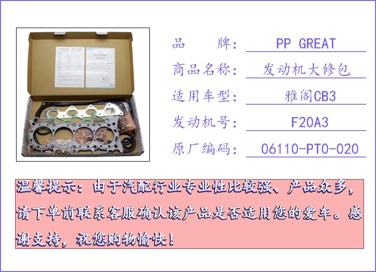 Aplicable a Honda Accord CB3 motor F20A3 kit de reparación superior e inferior 06110-PT0-020 garantía de calidad
