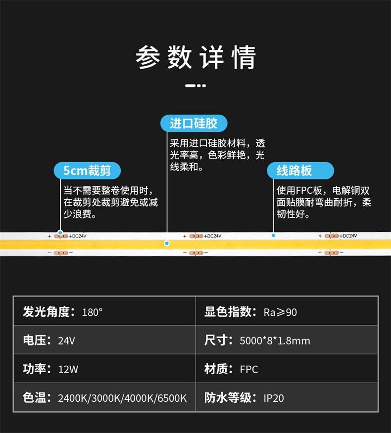 10.1m rolls/ra90 [24v silicone cob] 12w/meter white light 4.5cm one cut, 10.1m rolls/ra90 [24v silicone cob] 1...