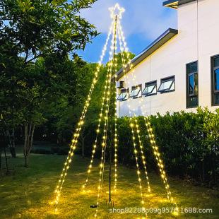 Amazon Más Vendido Luces de Cascada Estrella de Cinco Puntas Colgante Árbol de Navidad Decoración Exterior Patio Control Remoto Luces Solares