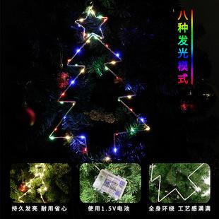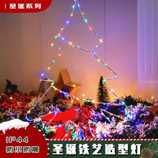 Luces de alambre de cobre para árbol de Navidad de venta caliente transfronteriza, luces con forma de estrella de cinco puntas y muñeco de nieve, decoración de ambiente festivo para interior y exterior, luces de hierro forjado